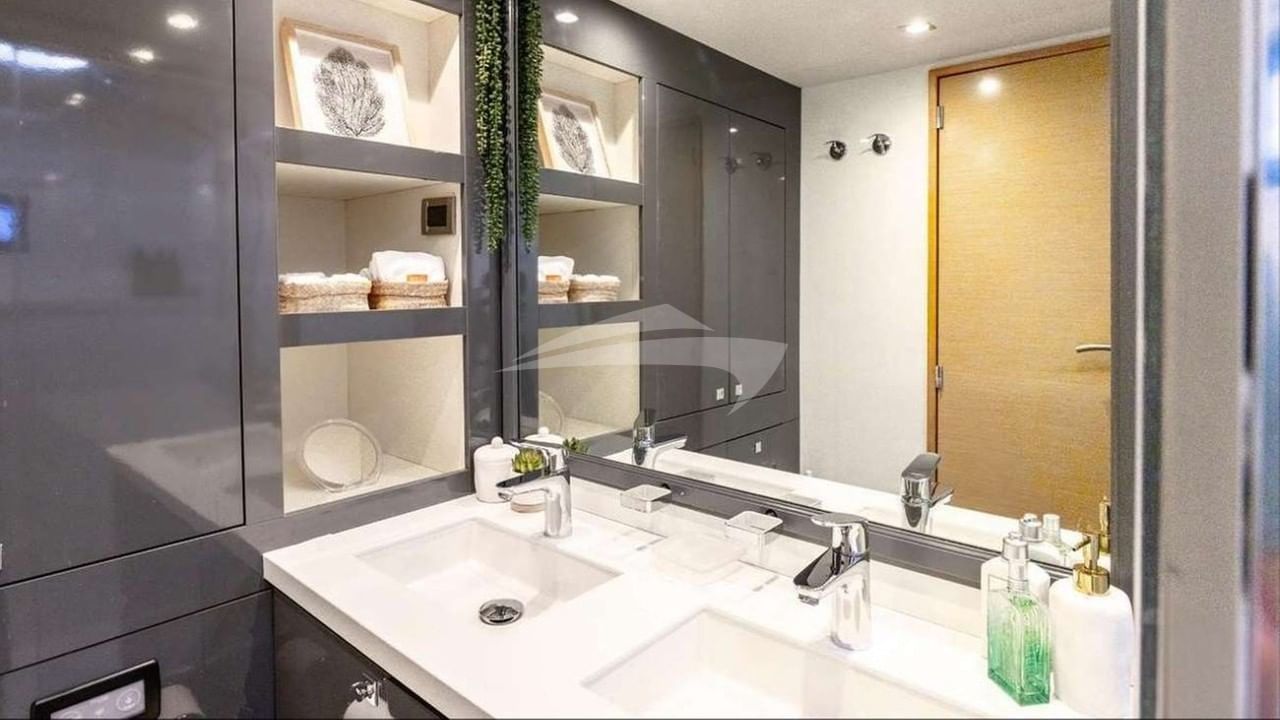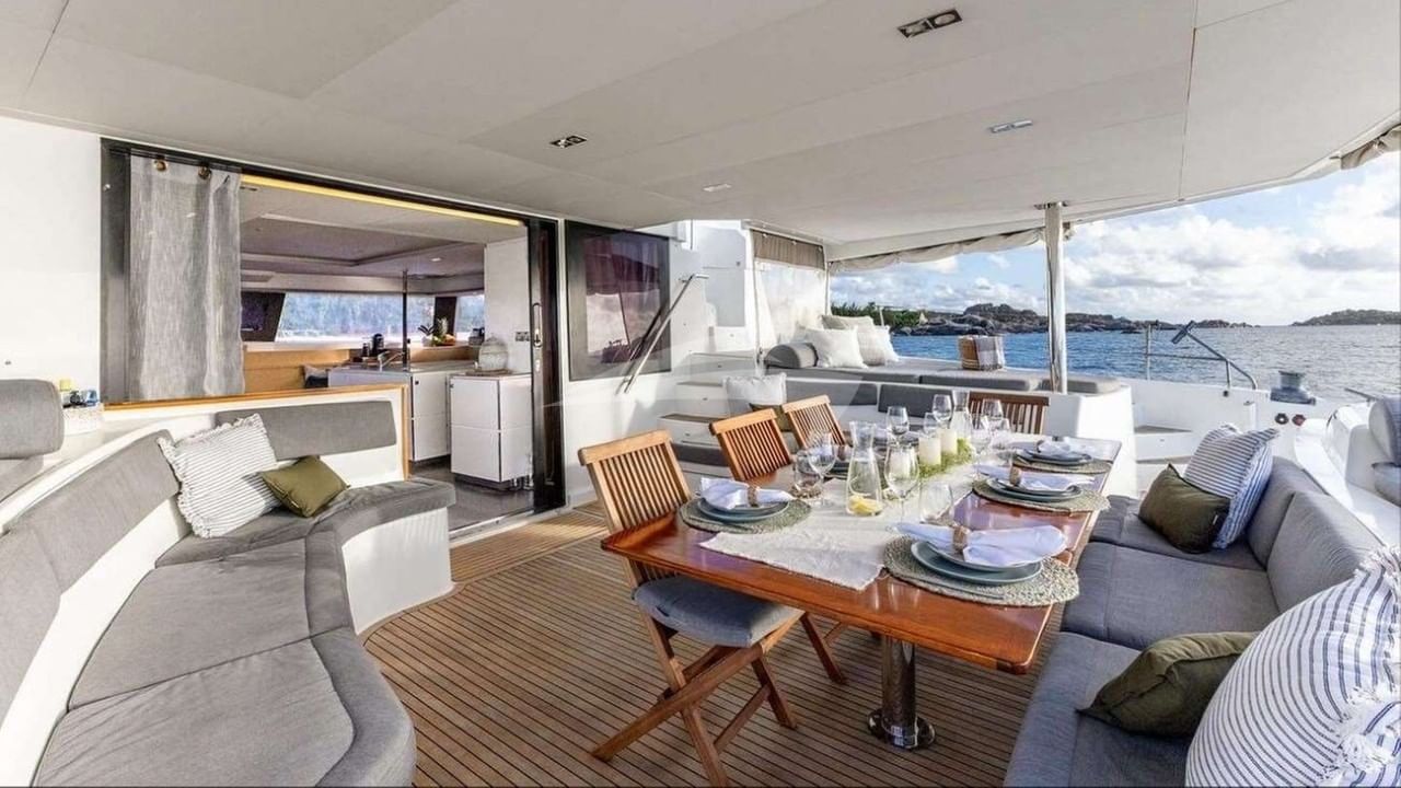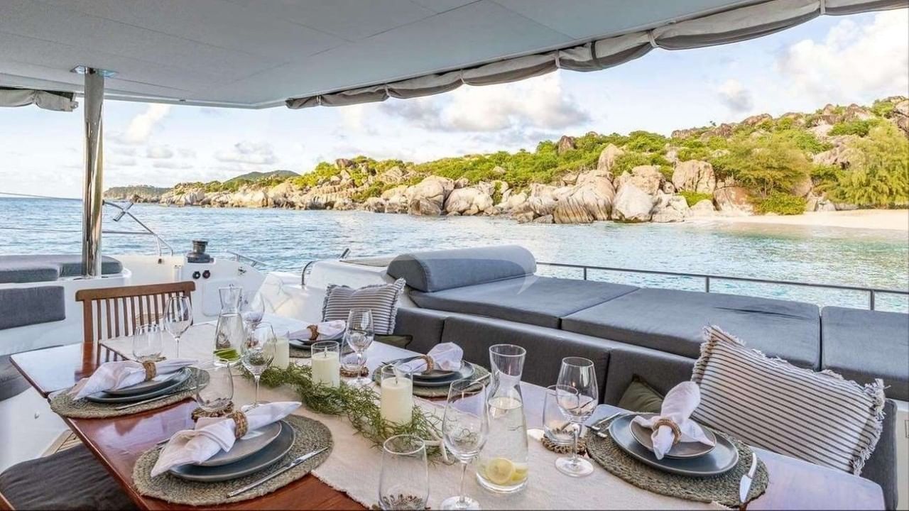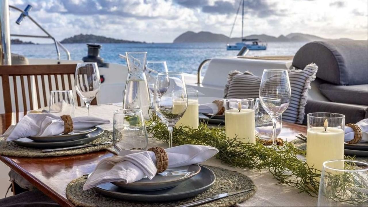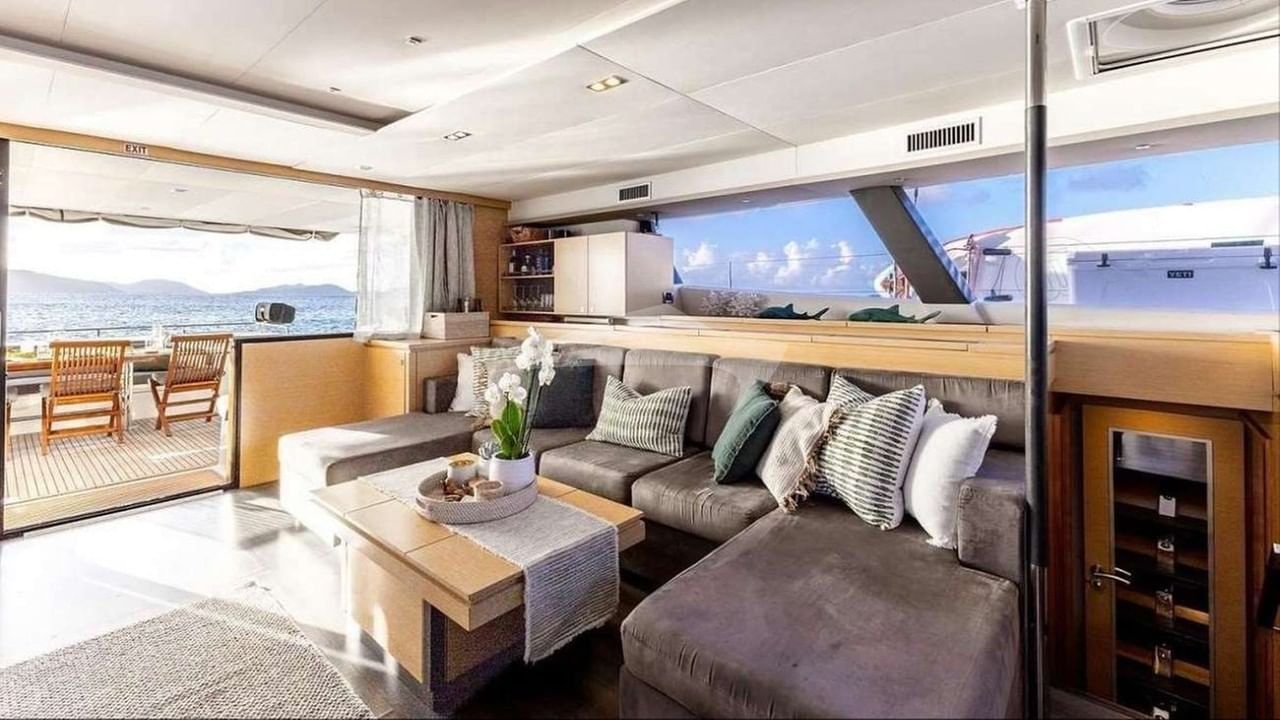 Zu den Annehmlichkeiten an Bord für die Chartergäste gehören Klimaanlage, Grill, Außendusche, Ausrüstung zum Hochseefischen, Fitnessraum, Indoor-Audiosystem, iPod-Dockingstation, TV-Salon und WLAN.