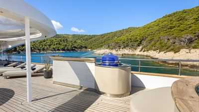 Zu den Annehmlichkeiten an Bord der Chartergäste gehören Klimaanlage, Badeplattform, Schönheitssalon, Kinderspielzimmer, Kino, Kaffeemaschine, Kran, Tanzfläche, Außendusche, Trainingsgeräte, Kamin, leichte Angelausrüstung, Sitzgelegenheiten auf dem Vordeck, Sitztisch auf dem Vordeck, Spielekonsole, Fitnessstudio, Fitnessgeräte, Eismaschine, Indoor-Audiosystem, Whirlpool an Deck, Massageraum, Outdoor-Audiosystem, Bar im Freien, Klavier, Sauna, Spa, spezielle Ernährungsbedürfnisse, Dampfbad, Sonnenpolster, Sonnendeck, Sonnenliegen, Badeplattform, Schwimmbad, Türkisches Bad, TV alle Kabinen, TV-Hauptkabine, TV im Freien, Fernsehsalon, Wasserkocher und WLAN.