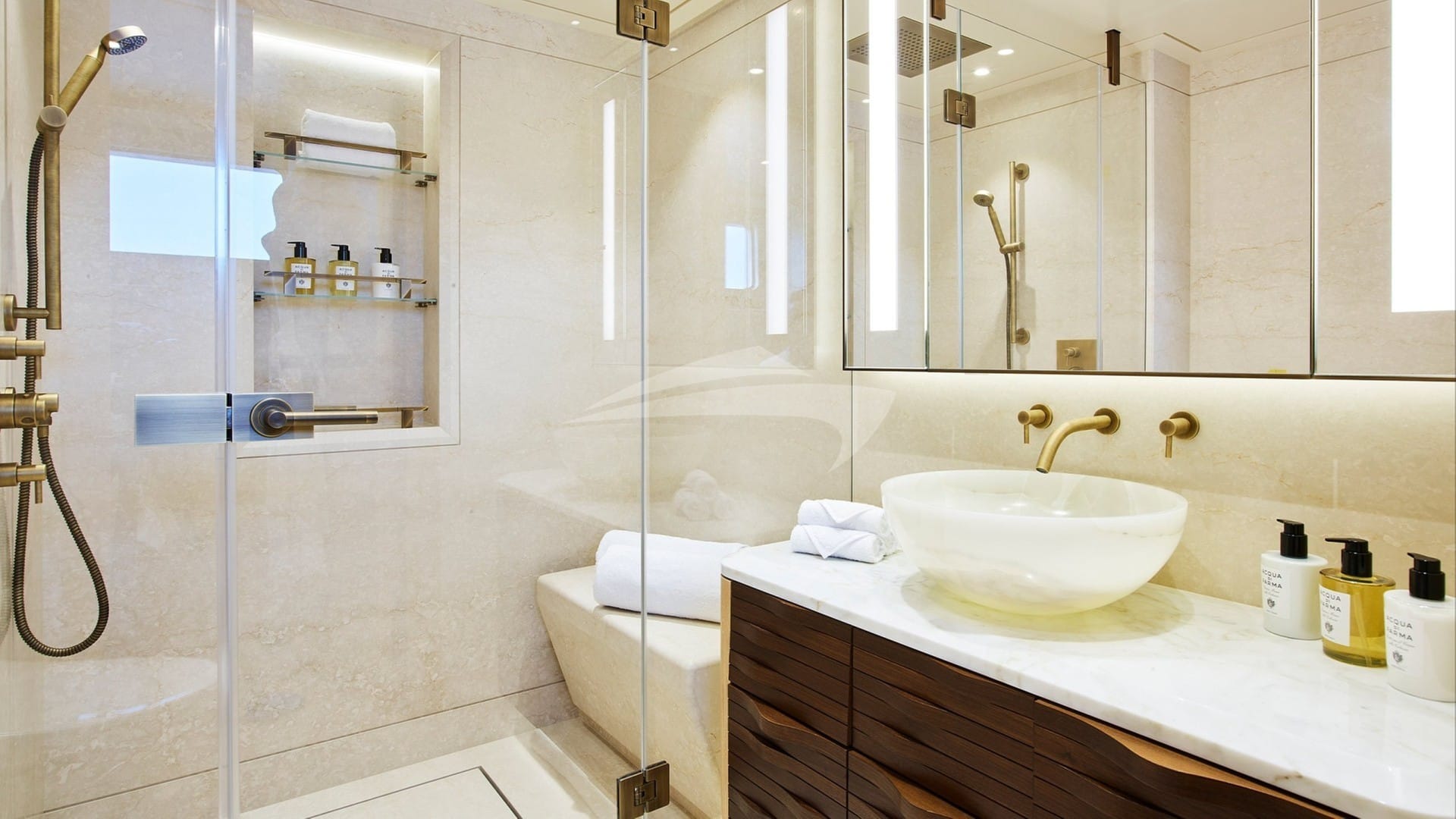COME TOGETHER wurde so konzipiert, dass bis zu 12 Chartergäste bequem in 6 Suiten untergebracht werden können.