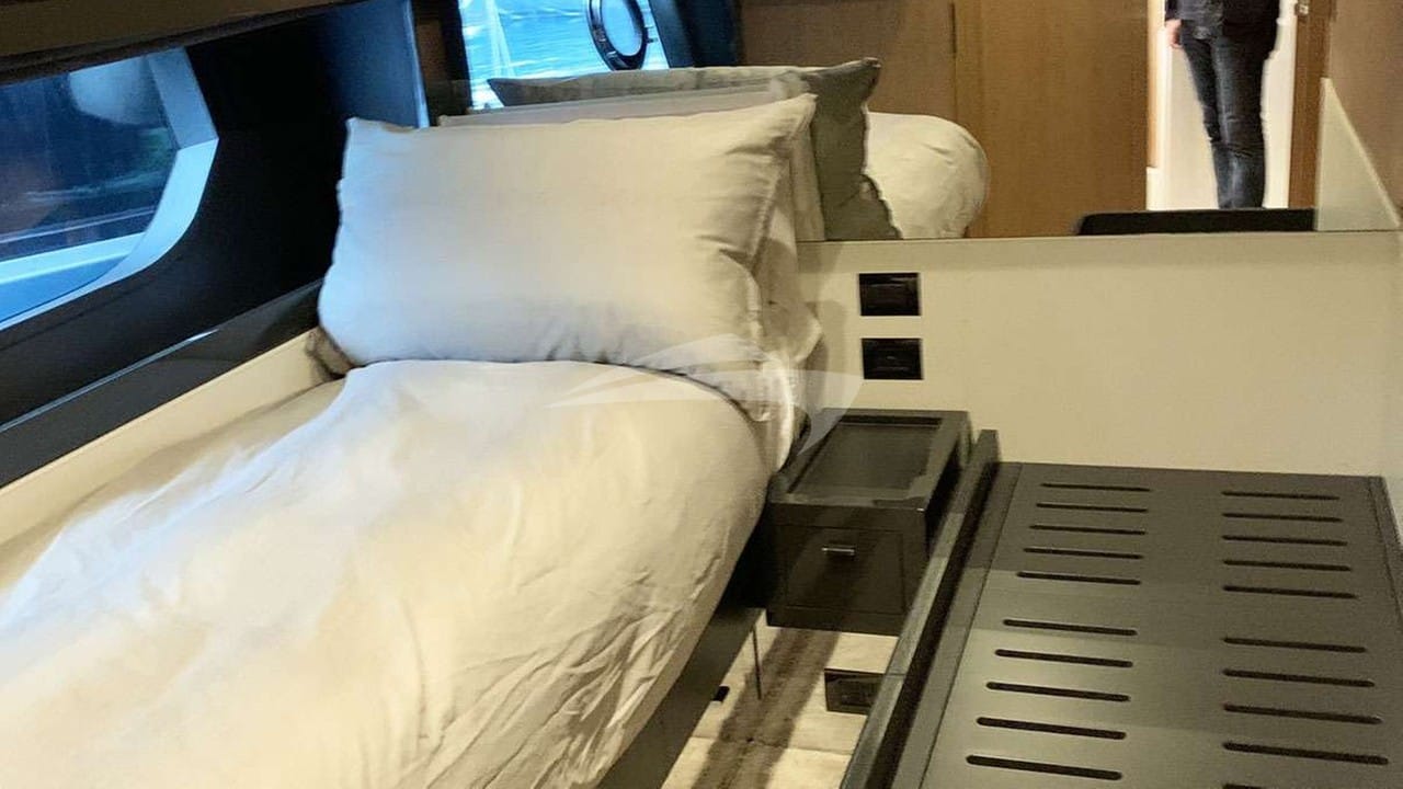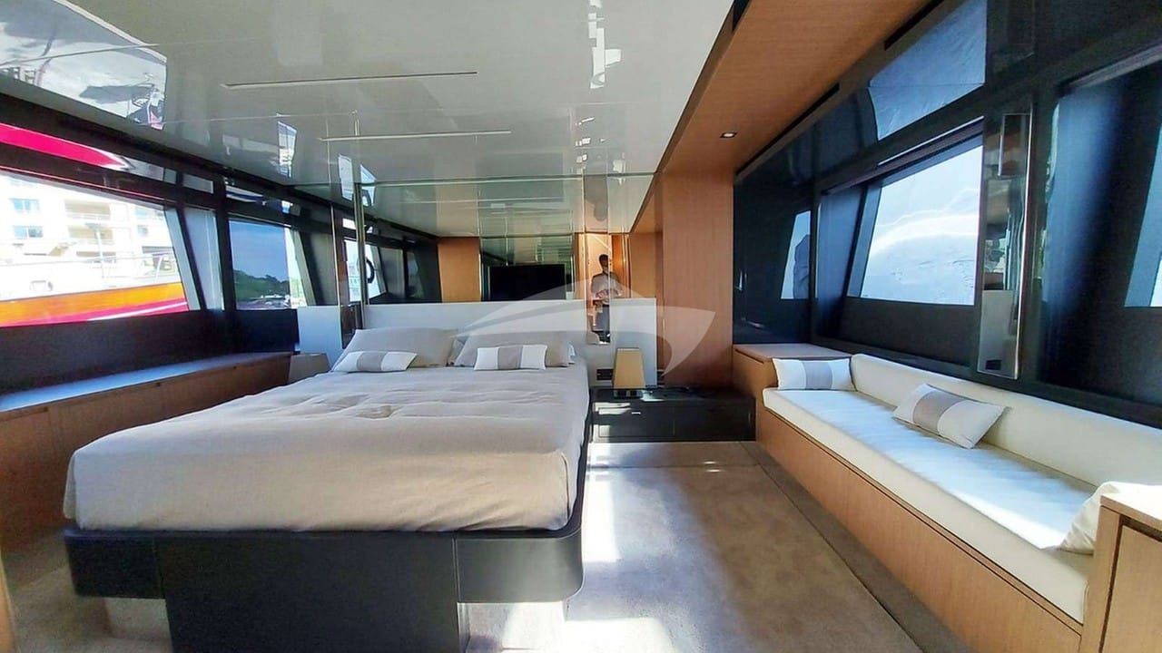 CHILUCE bietet Platz für 6 Gäste in 3 Kabinen, bestehend aus einer Primärsuite mit einem Kingsize-Bett, einer Kabine mit einem Queen-Size-Bett und einer Kabine mit einem Einzelbett.