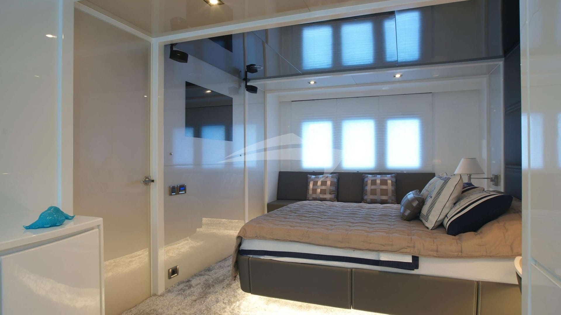REM bietet Platz für 10 Gäste in 5 Kabinen, bestehend aus einer Hauptsuite mit einem Kingsize-Bett und eigenem Bad, 2 Kabinen mit einem Queensize-Bett und eigenem Bad und 2 Kabinen mit einem Doppelbett und eigenem Bad.