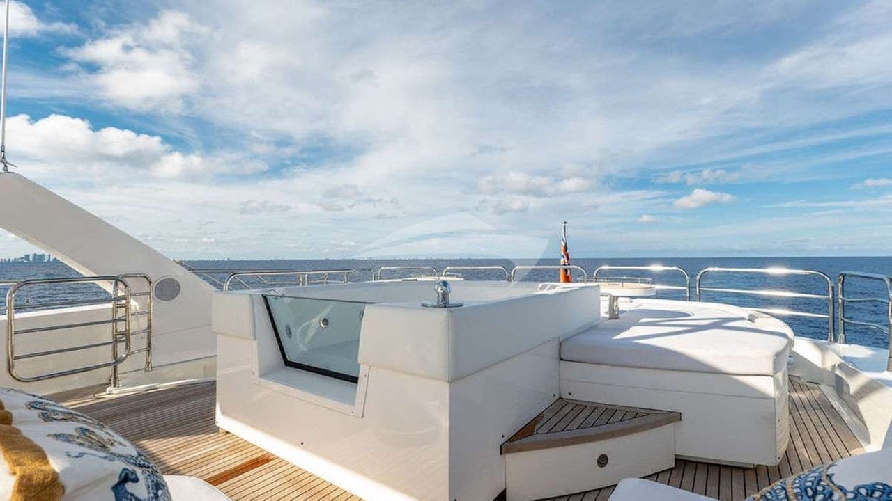 Zu den Annehmlichkeiten an Bord für die Chartergäste gehören eine Klimaanlage, ein Whirlpool an Deck und Stabilisatoren vor Anker.