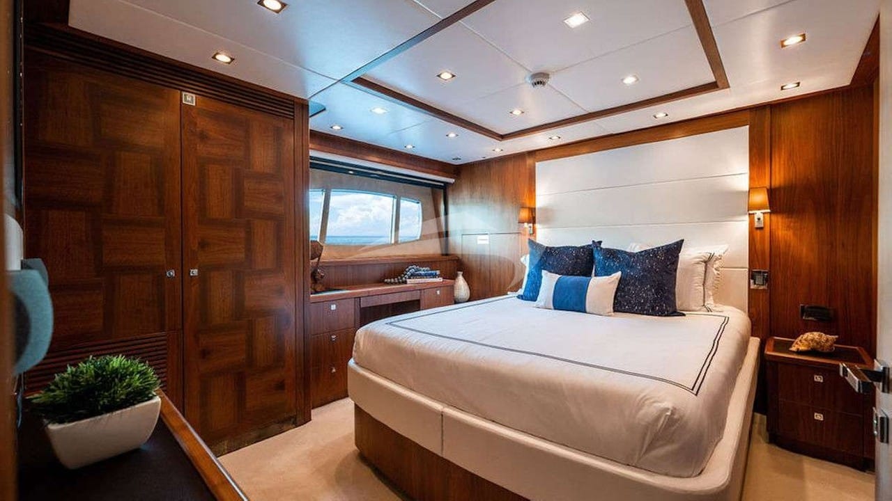 Die Gästekabinen umfassen eine primäre Suite mit einem Kingsize-Bett und einem eigenen Bad, 4 Kabinen mit einem Queensize-Bett und einem eigenen Bad sowie eine Kabine mit einem Einzelbett und einem eigenen Bad.
