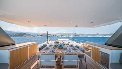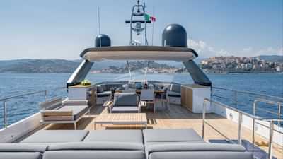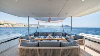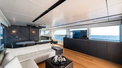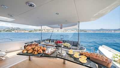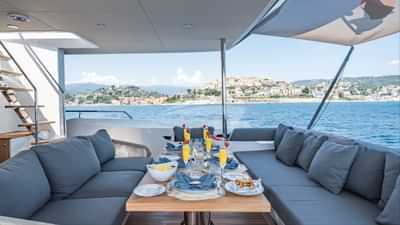 Zu den Annehmlichkeiten an Bord für die Chartergäste gehören Klimaanlage, Sauna, Stabilisatoren vor Anker, Sonnenpolster, Sonnenliegen, Badeplattform und WLAN.