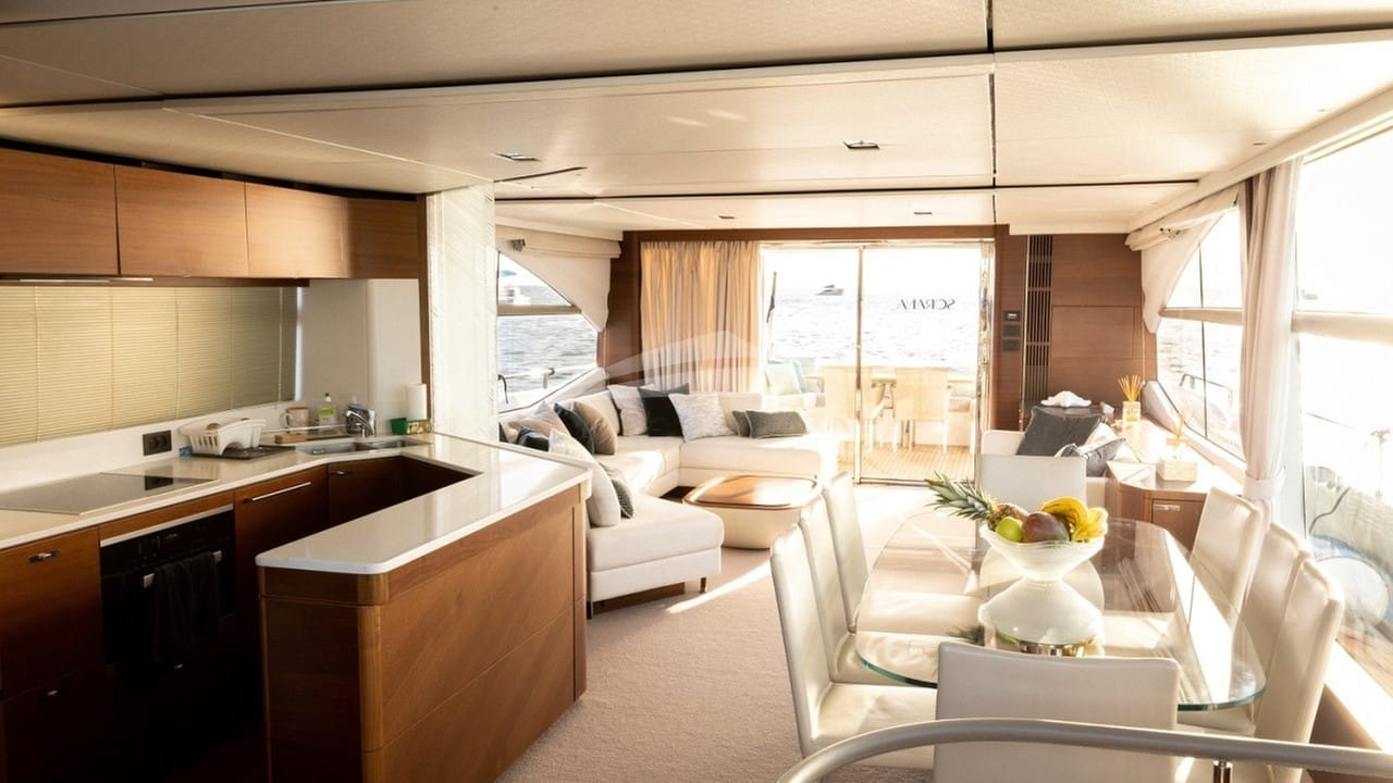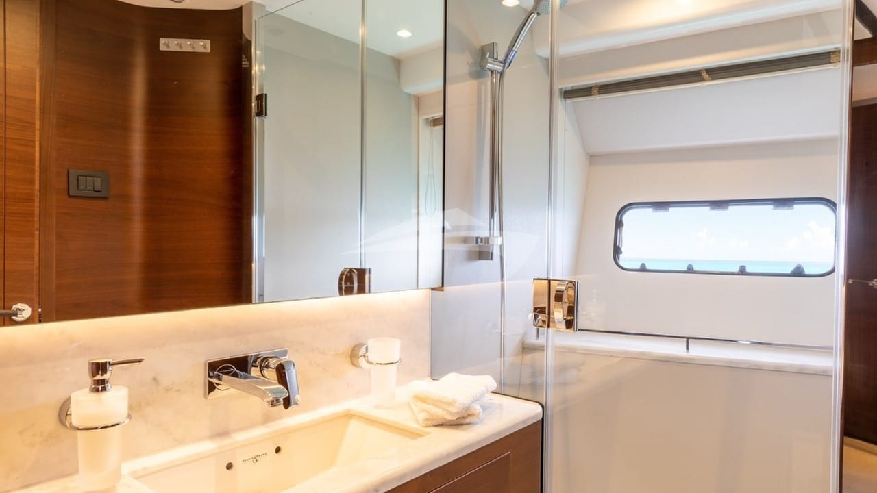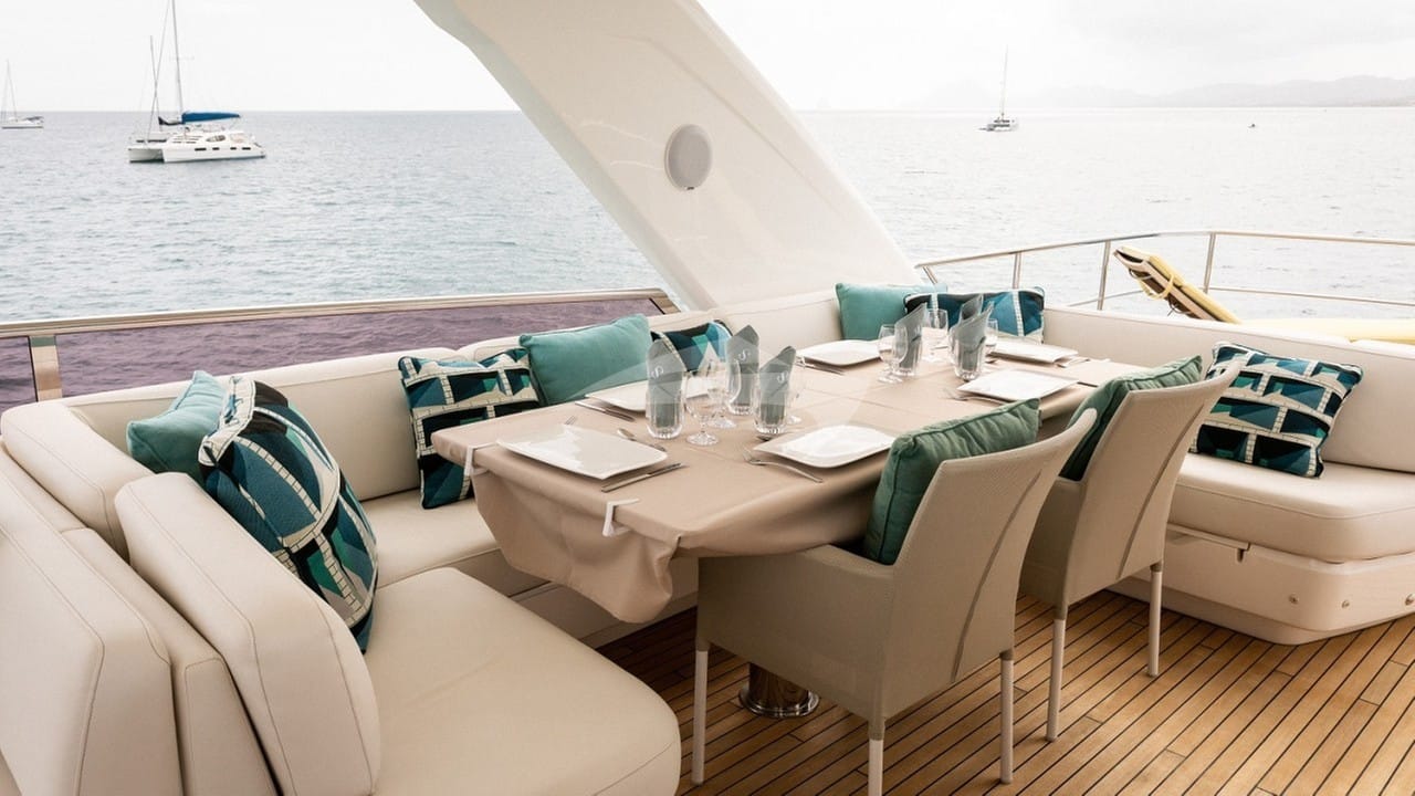 Zu den Annehmlichkeiten an Bord für die Chartergäste gehören Klimaanlage, Grill, Kaffeemaschine, Außendusche, Eismaschine, Innenaudiosystem, Regionalfernsehen, Außenaudiosystem, Stabilisatoren vor Anker, Starlink-Satelliteninternet, Sonnenpolster, Sonnenliegen, Badeplattform, TV in allen Kabinen, TV-Salon, Wasserkocher und WLAN.