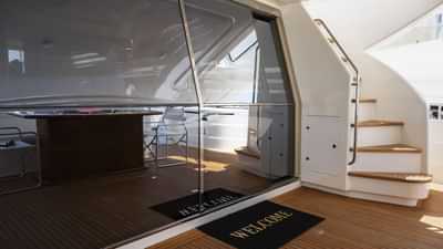 Zu den Annehmlichkeiten an Bord für die Chartergäste gehören eine Klimaanlage, ein Audiosystem im Innenbereich, eine iPod-Dockingstation, eine Badeplattform und ein Fernsehsalon.