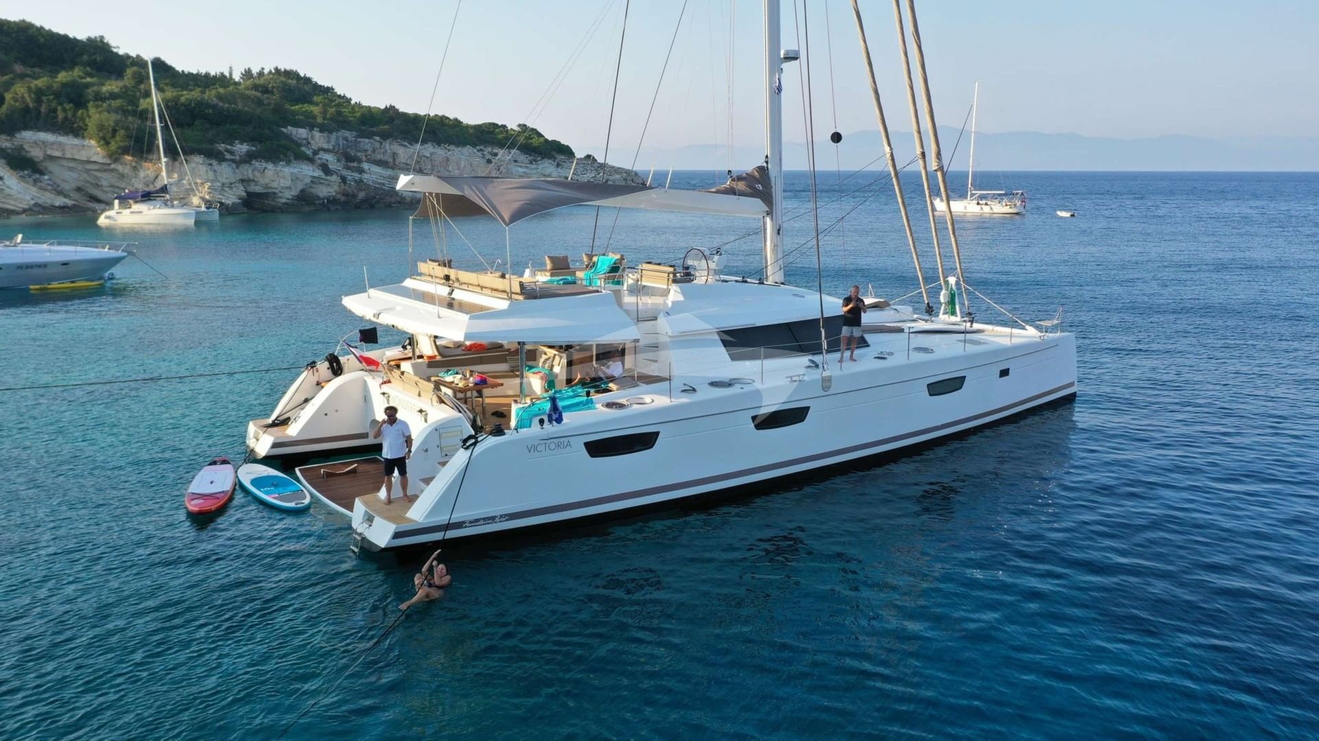 Zu den Annehmlichkeiten an Bord für die Chartergäste gehören Klimaanlage, Grill, Außendusche, Indoor-Audiosystem, iPod-Dockingstation, TV-Salon und WLAN.