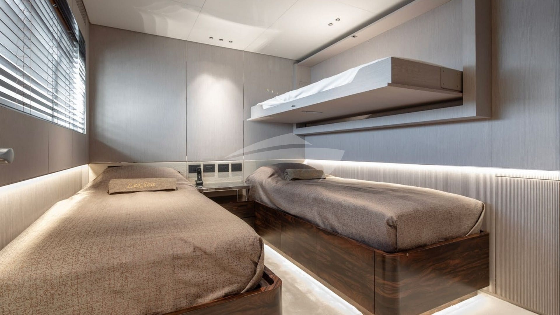 LEXSEA wurde so konzipiert, dass bis zu 10 Chartergäste bequem in 5 Suiten untergebracht werden können.