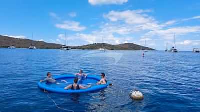 Zu den Annehmlichkeiten an Bord für die Chartergäste gehören eine Badeplattform, ein Grill, eine Außendusche, leichte Angelausrüstung, Sitzgelegenheiten auf dem Vordeck, eine hydraulische Badeplattform, eine Eismaschine, eine Badeplattform, ein TV-Salon und WLAN.
