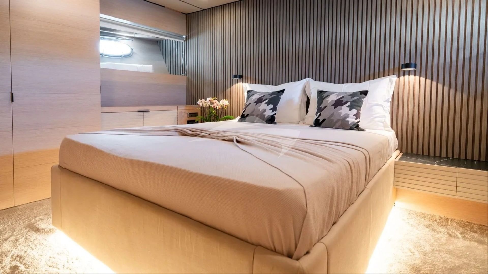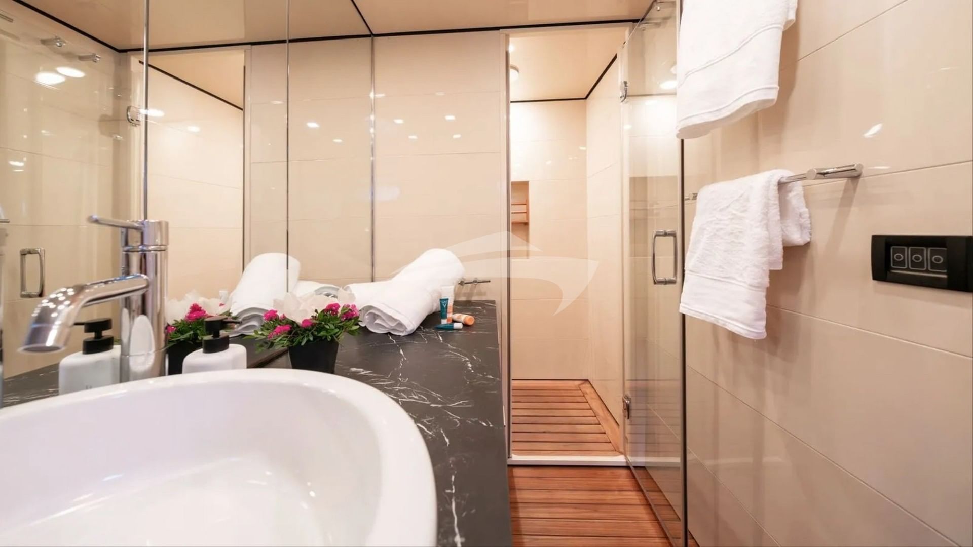 ALFA wurde so konzipiert, dass bis zu 8 Chartergäste bequem in 4 Suiten untergebracht werden können.