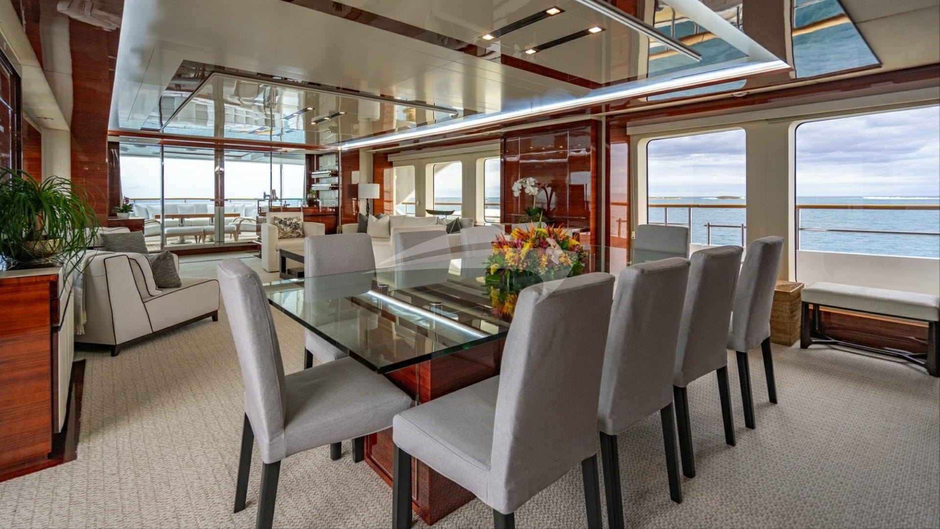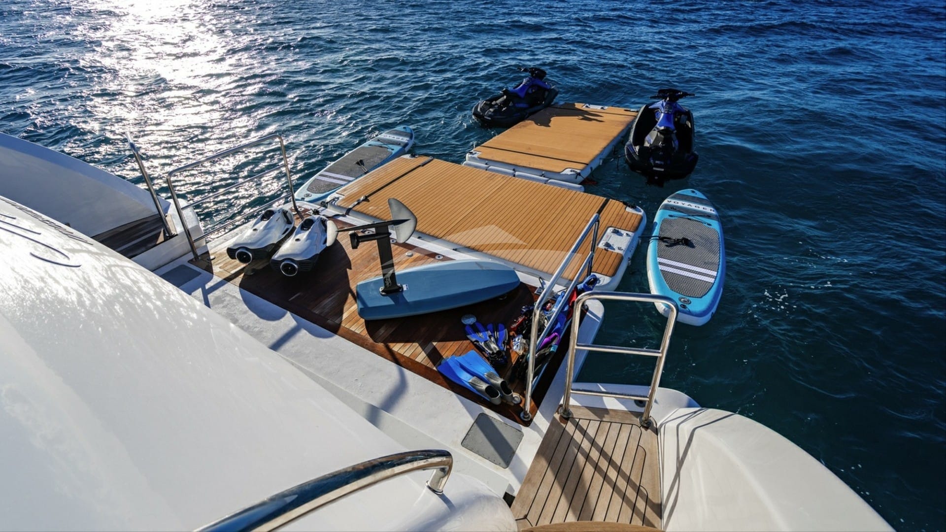 Zu den Annehmlichkeiten an Bord für die Chartergäste gehören Klimaanlage, Grill, leichte Angelausrüstung, Jacuzzi an Deck, Stabilisatoren und WLAN.