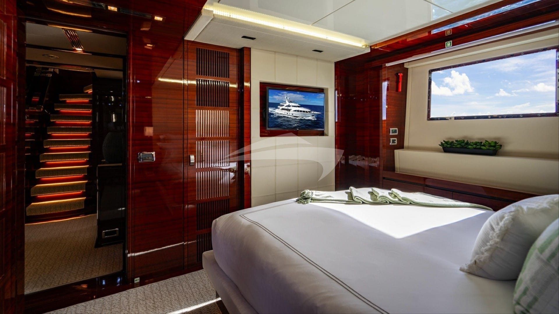 Die Gästekabinen umfassen eine primäre Suite mit einem Kingsize-Bett und einem eigenen Bad, 2 Kabinen mit einem Doppelbett und einem eigenen Bad sowie 2 Kabinen mit einem Einzelbett und einem eigenen Bad.