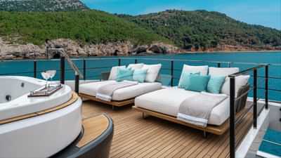 Zu den Annehmlichkeiten an Bord für die Chartergäste gehören Klimaanlage, Beach Club, leichte Angelausrüstung, Jacuzzi an Deck, Stabilisatoren und WLAN.