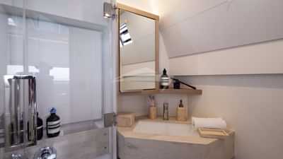 DREAM wurde so konzipiert, dass bis zu 10 Chartergäste bequem in 5 Suiten untergebracht werden können.