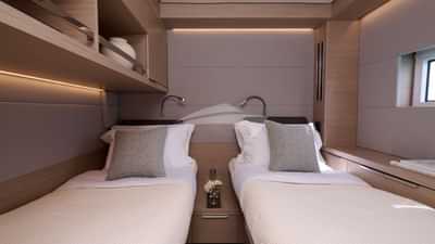Die Gästekabinen umfassen eine primäre Suite mit einem Queensize-Bett und einem eigenen Bad, 3 Kabinen mit einem Queensize-Bett und einem eigenen Bad sowie eine Kabine mit einem Einzelbett und einem eigenen Bad.