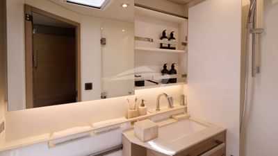 Zu den Annehmlichkeiten an Bord für die Chartergäste gehören eine Klimaanlage, ein Audiosystem im Innenbereich, ein Fernsehsalon und WLAN.