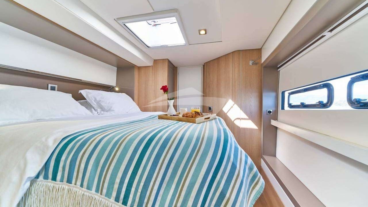 Die Gästekabinen umfassen eine primäre Suite mit einem Doppelbett und einem eigenen Bad, 4 Kabinen mit einem Doppelbett und einem eigenen Bad sowie 2 Kabinen mit einem Einzelbett.