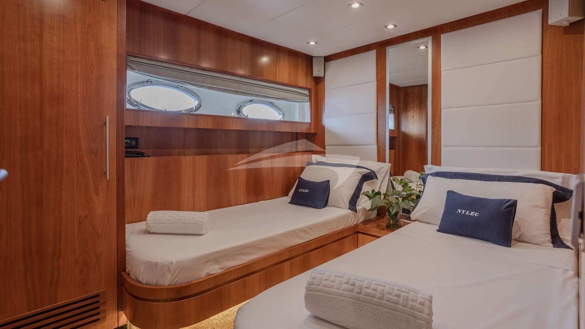 NYLEC wurde so konzipiert, dass bis zu 8 Chartergäste bequem in 4 Suiten untergebracht werden können.