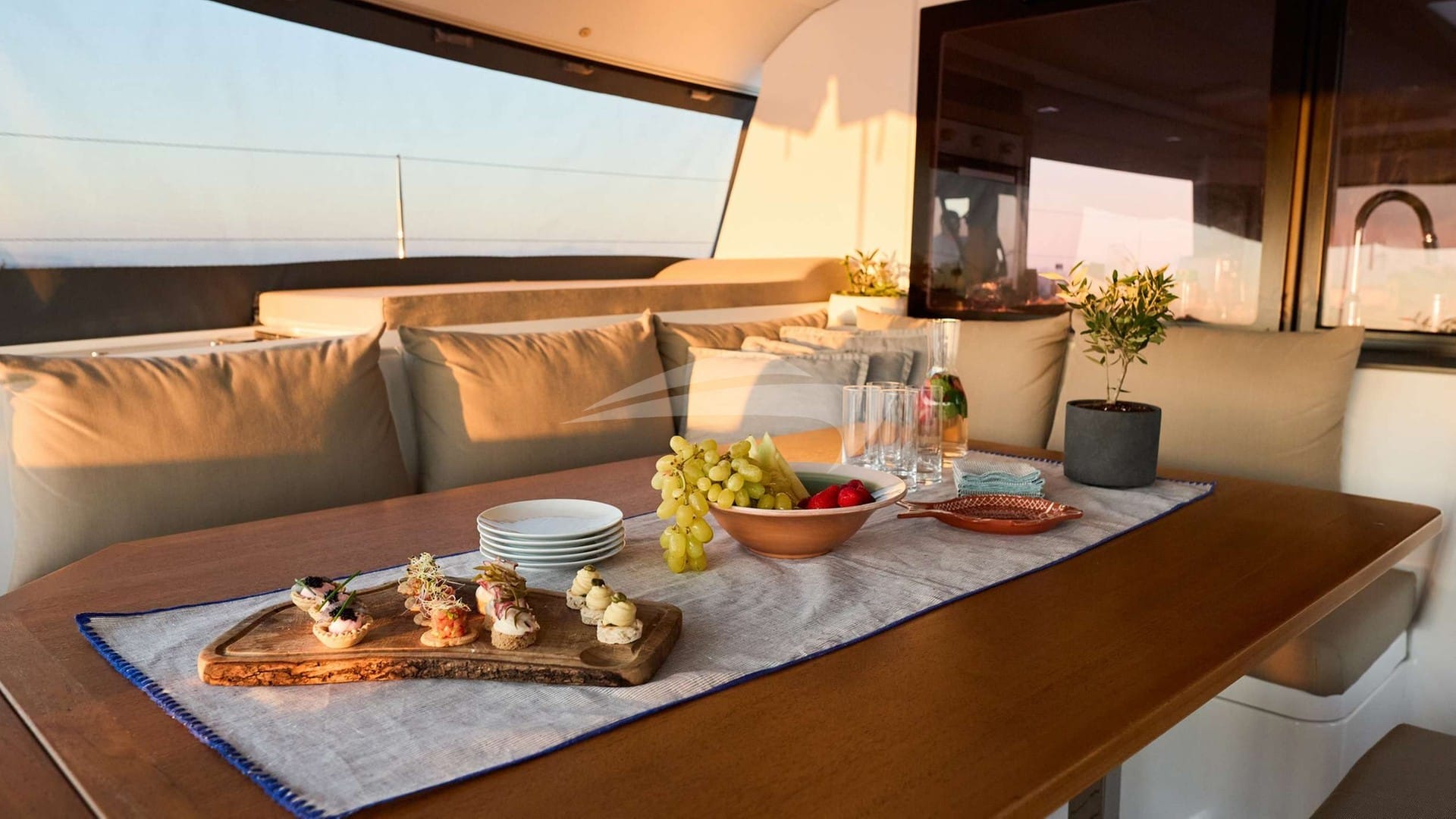 Zu den Annehmlichkeiten an Bord für die Chartergäste gehören eine Klimaanlage, eine Außendusche, ein Audiosystem im Innenbereich, eine iPod-Dockingstation, ein TV-Salon und WLAN.