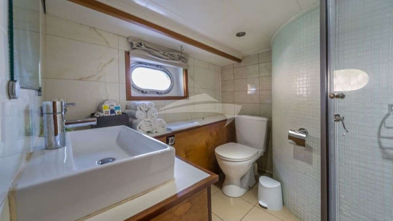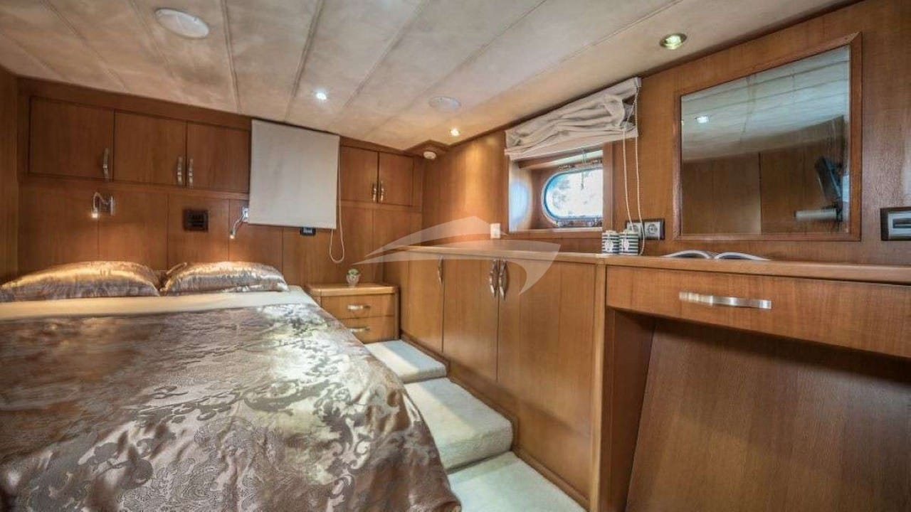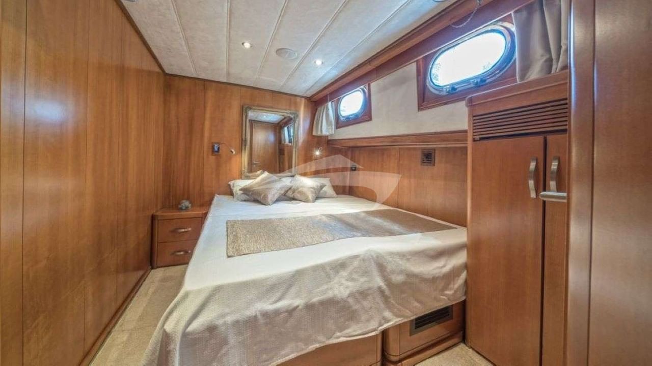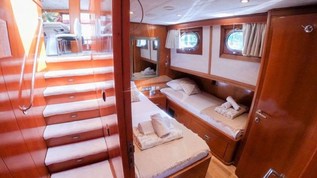 Die Gästekabinen umfassen eine primäre Suite mit einem Queensize-Bett, 2 Kabinen mit einem Queensize-Bett und 2 Kabinen mit einem Twin-Bett.