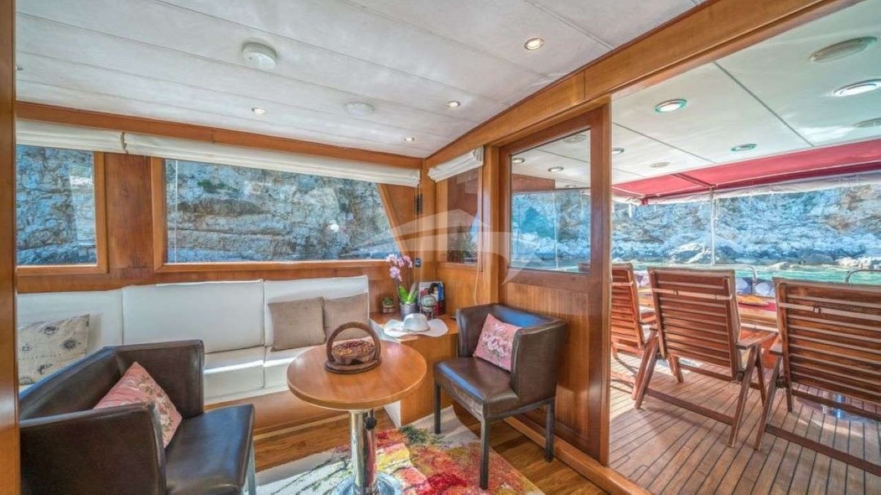 Zu den Annehmlichkeiten an Bord für die Chartergäste gehören Klimaanlage, Grill, Außendusche, Indoor-Audiosystem, iPod-Dockingstation, TV-Salon und WLAN.