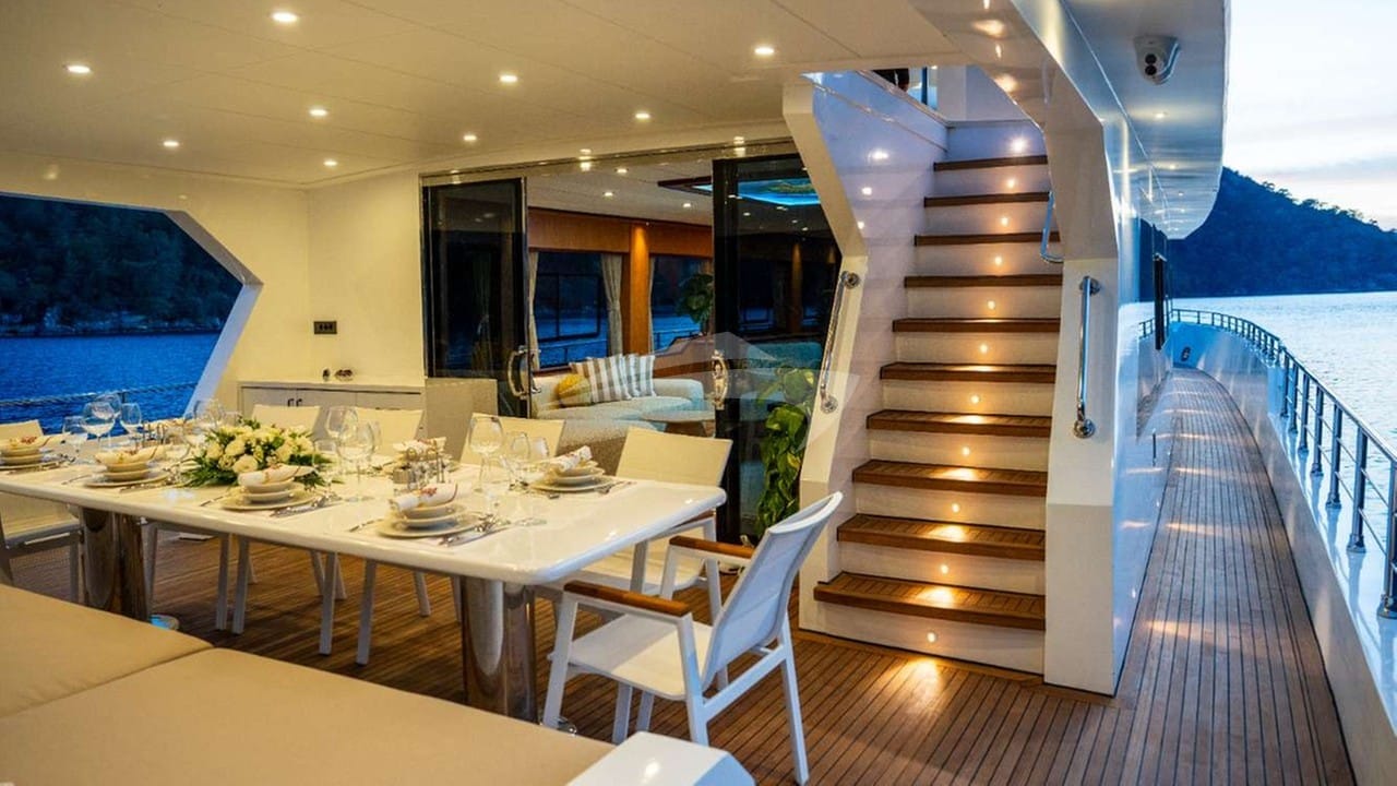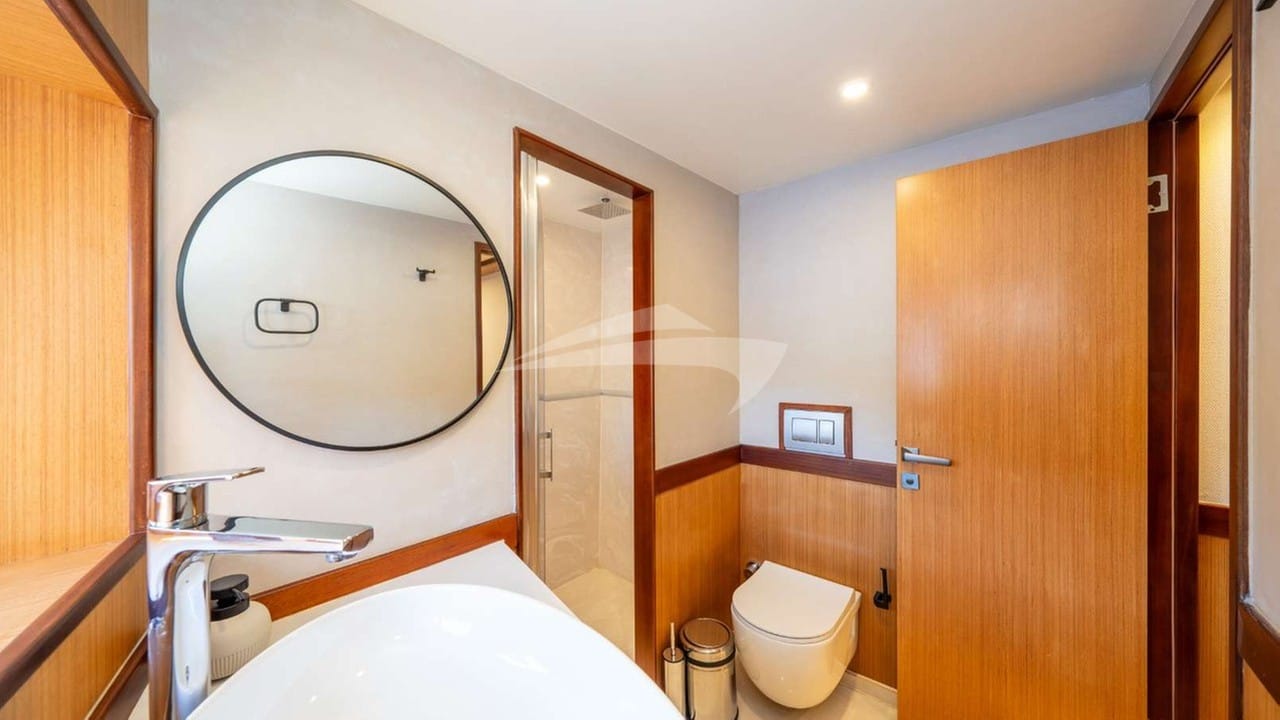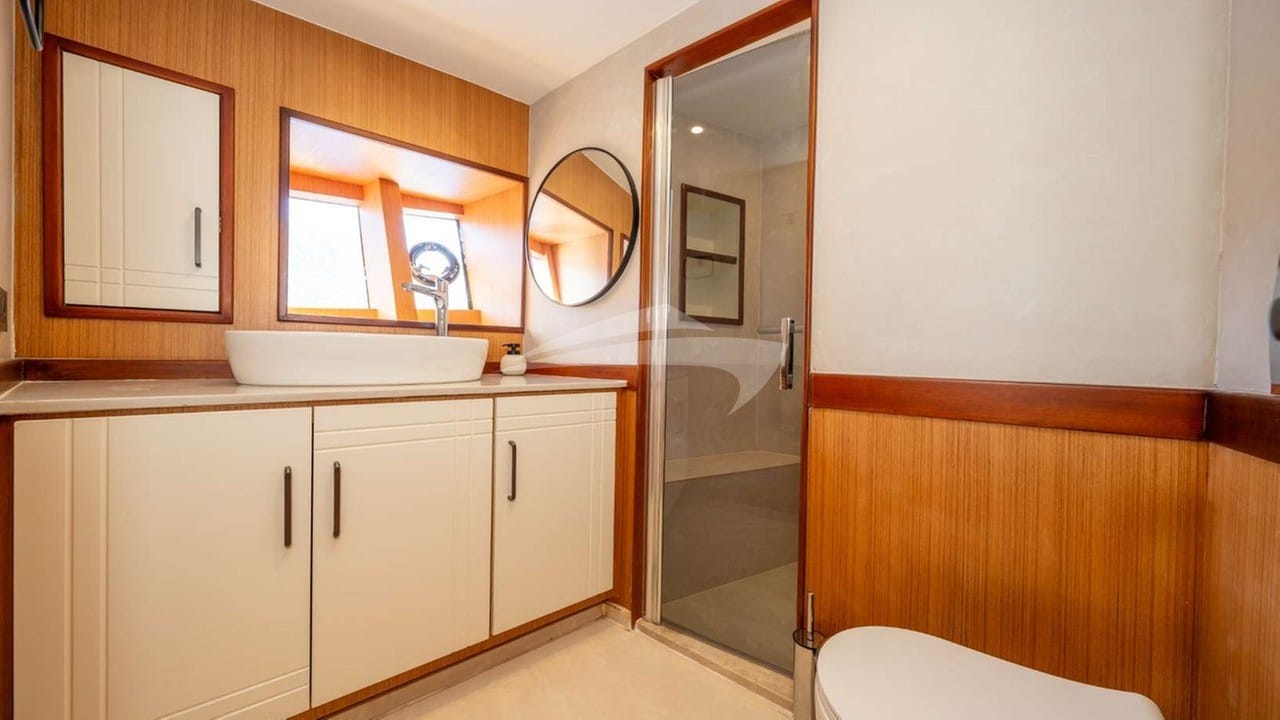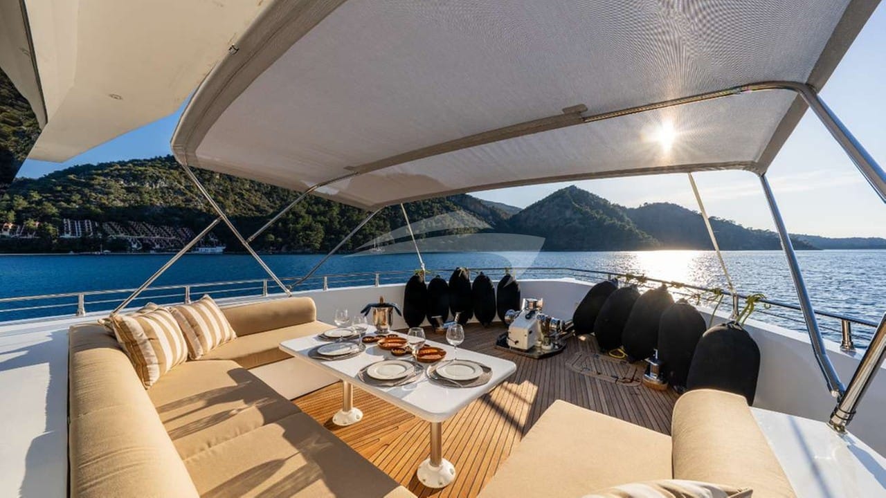 Zu den Annehmlichkeiten an Bord für die Chartergäste gehören eine Klimaanlage, ein Audiosystem im Innenbereich, eine Badeplattform, ein Fernsehsalon und WLAN.