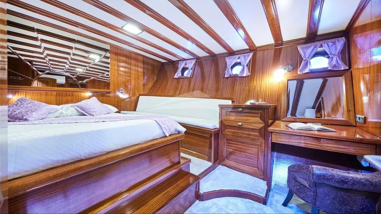 Die Gästekabinen bestehen aus einer Hauptsuite mit einem Kingsize-Bett und eigenem Bad, einer VIP-Suite mit einem Kingsize-Bett und eigenem Bad, 4 Kabinen mit einem Doppelbett und eigenem Bad und 2 Kabinen mit einem Einzelbett und eigenem Bad.