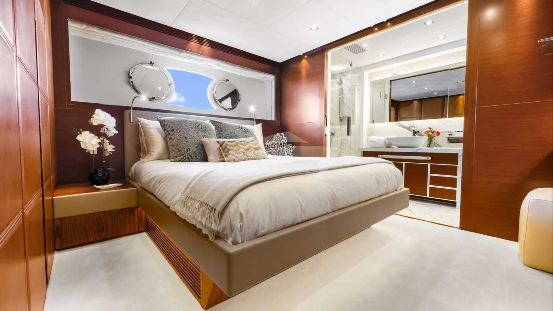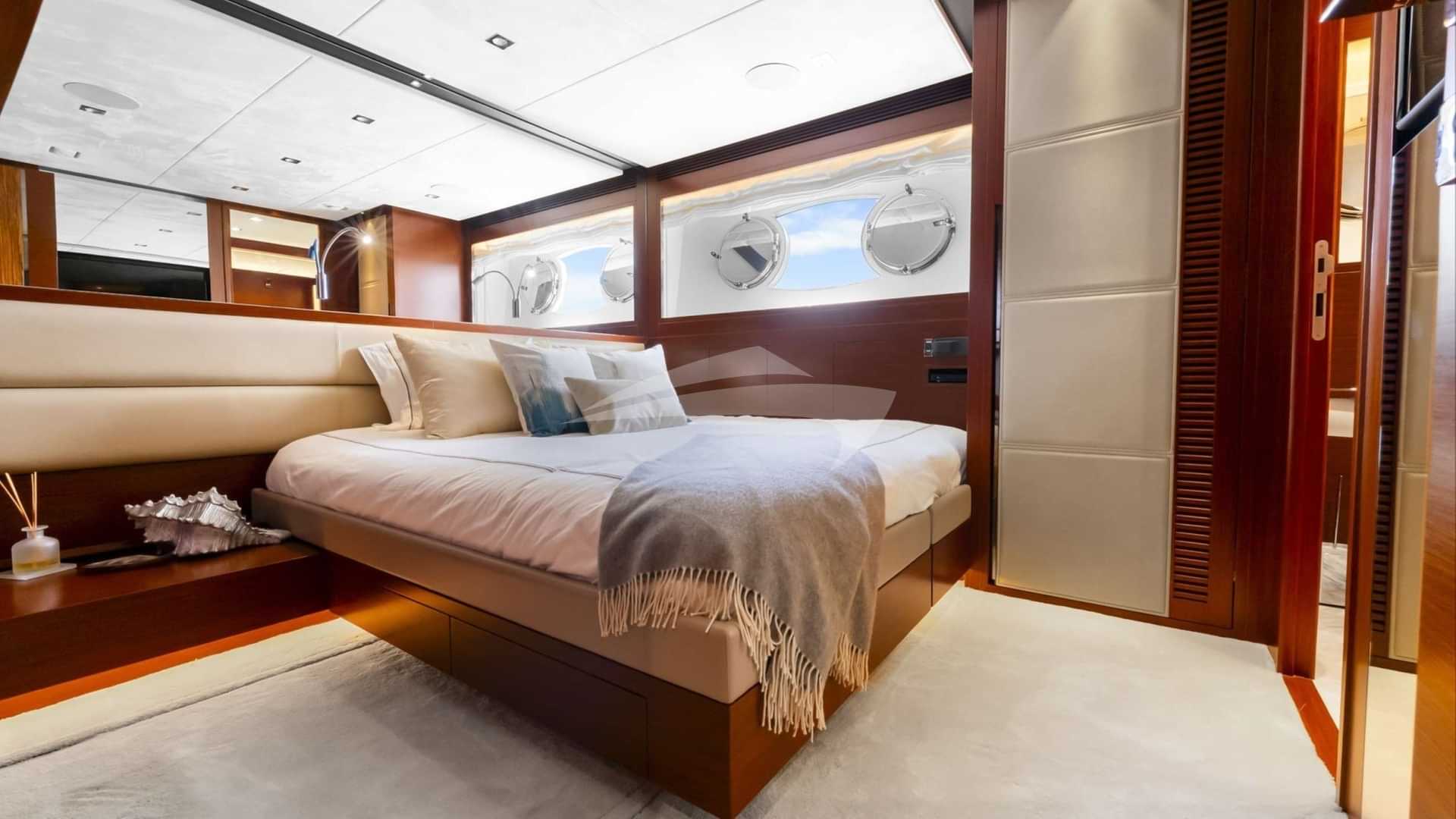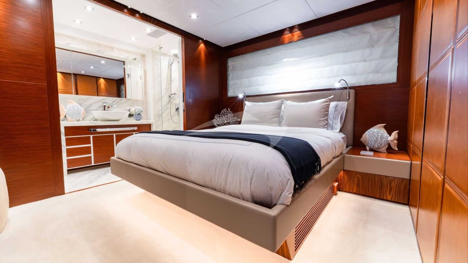 Die Gästekabinen bestehen aus einer Primärsuite mit einem Kingsize-Bett und eigenem Bad auf dem Hauptdeck, einer VIP-Suite mit einem Queensize-Bett und eigenem Bad, einer VIP-Suite mit einem Queensize-Bett und eigenem Bad, einer Kabine mit 2 Einzelbetten und eigenem Bad sowie einer Kabine mit 2 Einzelbetten und einem Pullman-Bett und eigenem Bad.