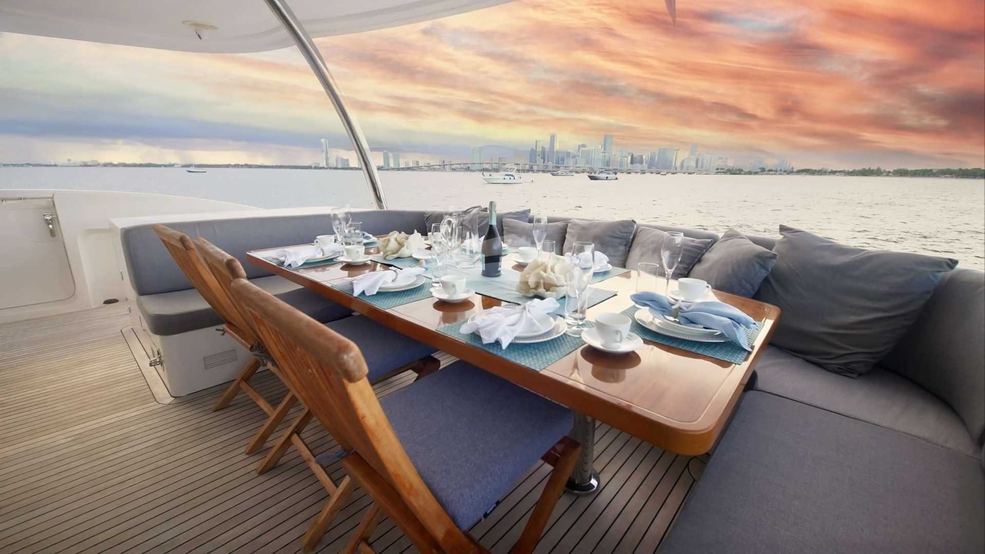 Zu den Annehmlichkeiten an Bord für die Chartergäste gehören Klimaanlage, Grill, Großwildfischausrüstung, leichte Angelausrüstung, Fitnessgeräte, Jacuzzi an Deck, Bar im Freien und WLAN.