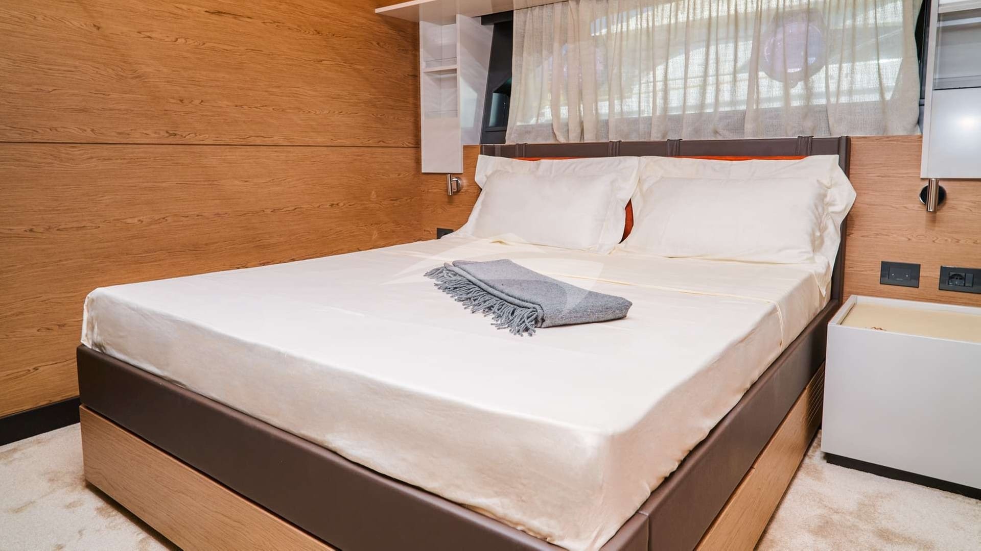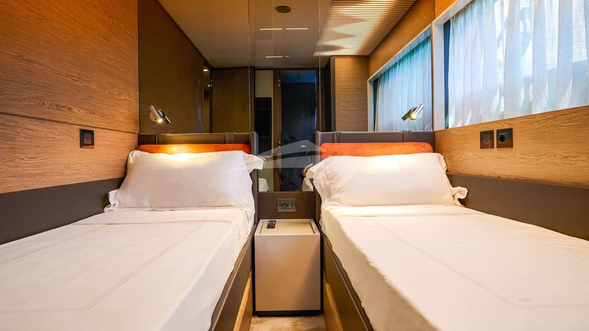 Die Gästekabinen bestehen aus einer primären Suite mit einem Doppelbett und einem eigenen Bad sowie 4 Kabinen mit einem Doppelbett und einem eigenen Bad.