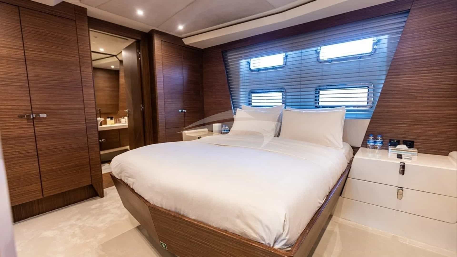 Die Gästekabinen bestehen aus einer Hauptsuite mit einem Kingsize-Bett und eigenem Bad, 2 VIP-Suiten mit einem Kingsize-Bett und eigenem Bad sowie 2 Kabinen mit einem Einzelbett und eigenem Bad.