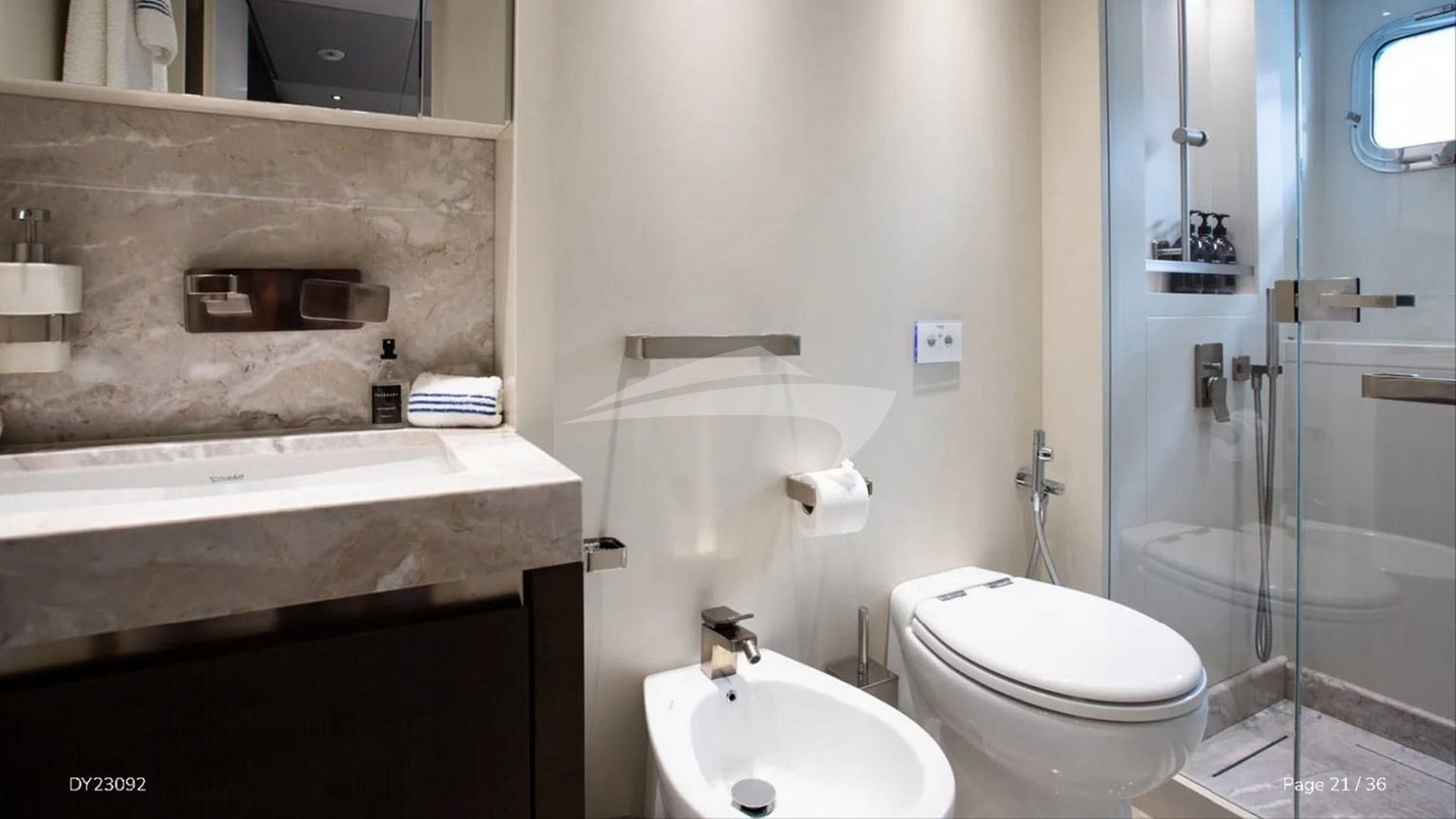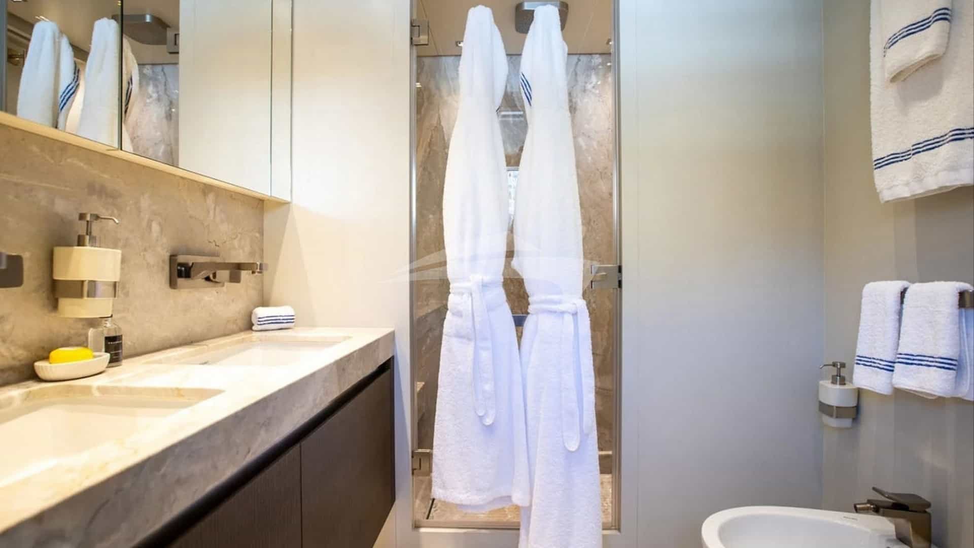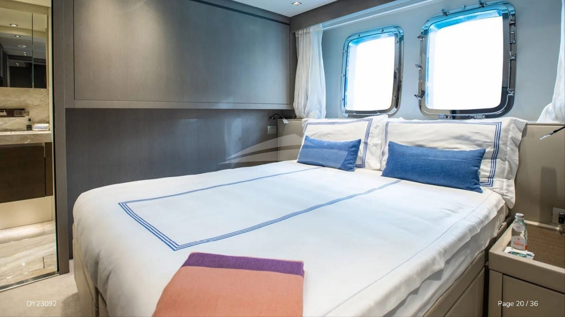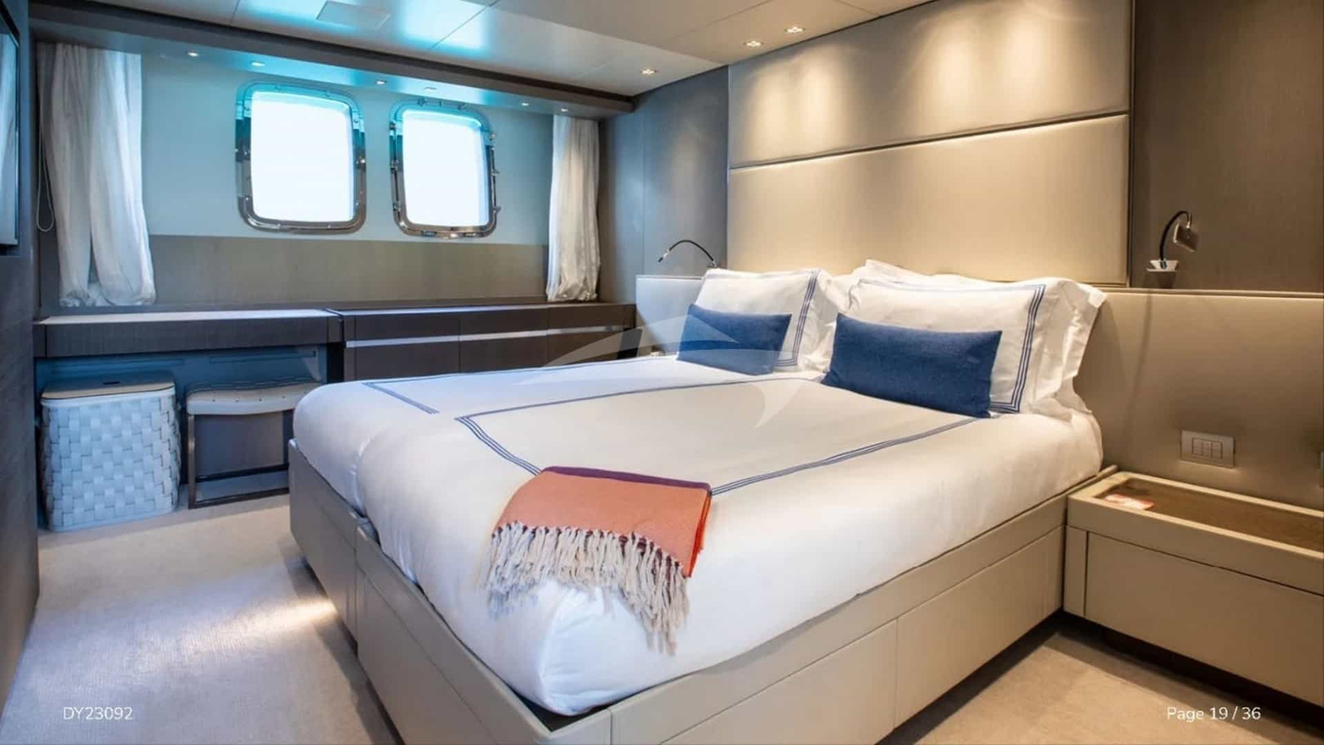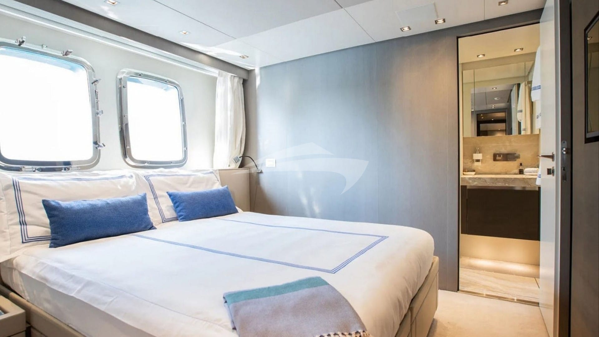Die Gästekabinen umfassen eine primäre Suite mit einem Kingsize-Bett und einem eigenen Bad, eine VIP-Suite mit einem Kingsize-Bett und einem eigenen Bad sowie 2 Kabinen mit einem Einzelbett und einem eigenen Bad.