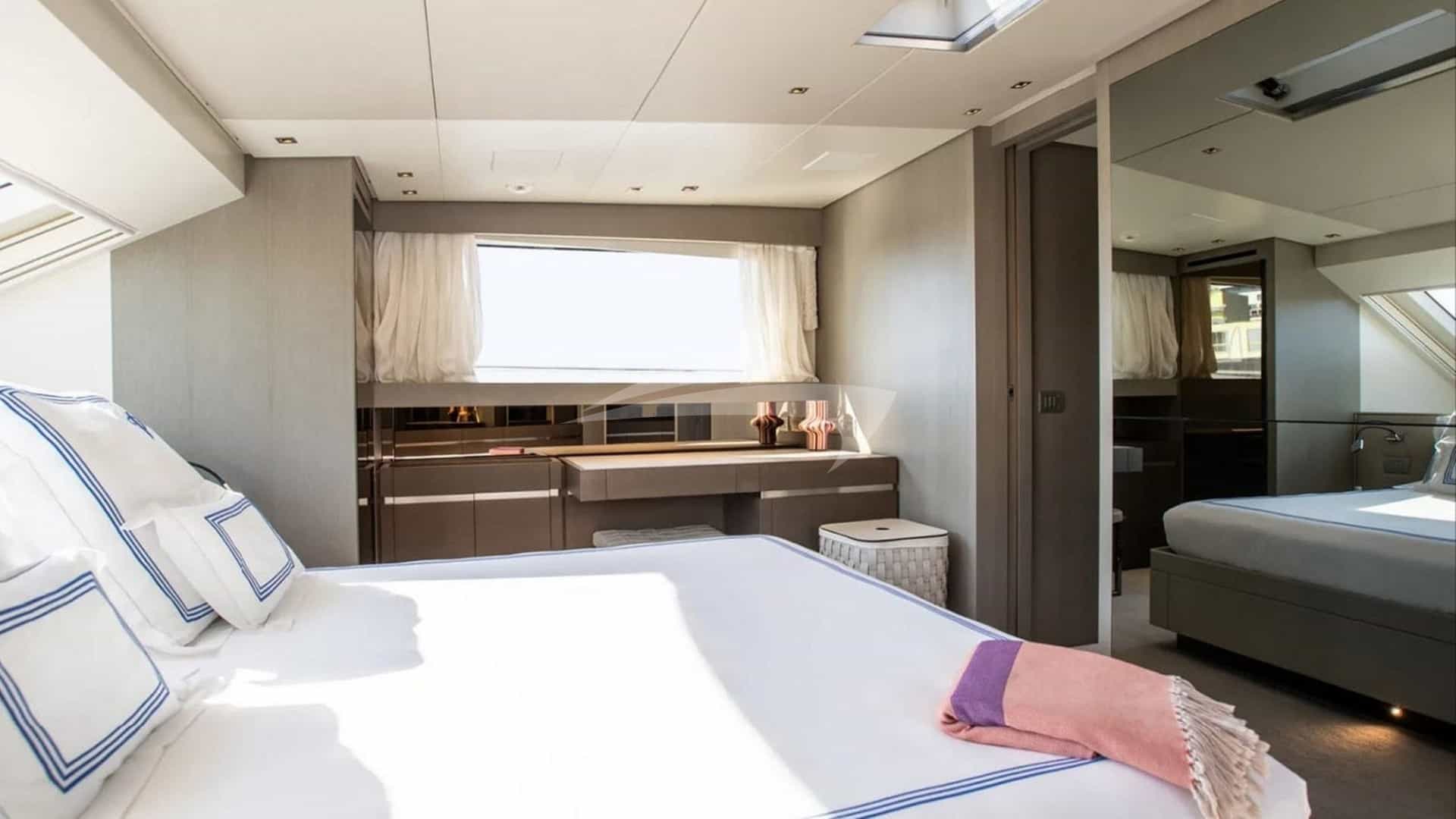 ALEIN wurde so konzipiert, dass bis zu 8 Chartergäste bequem in 4 Suiten untergebracht werden können.