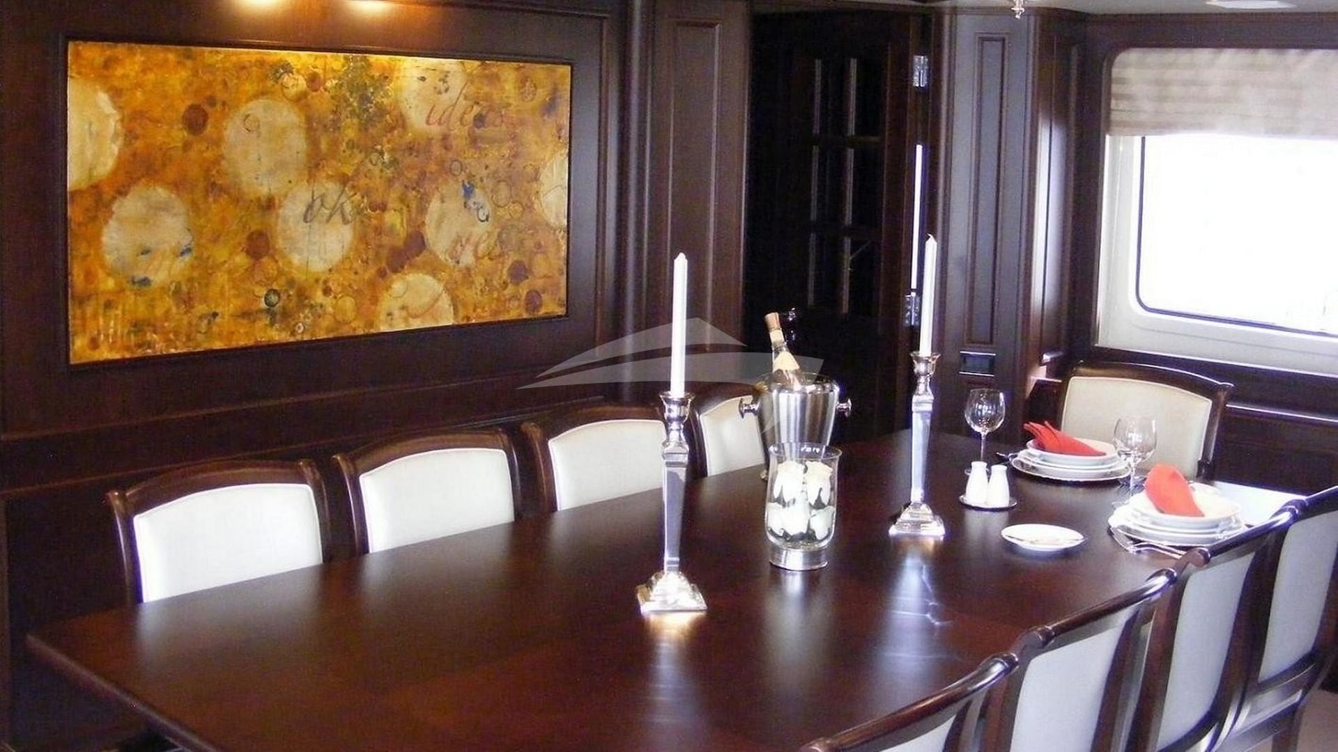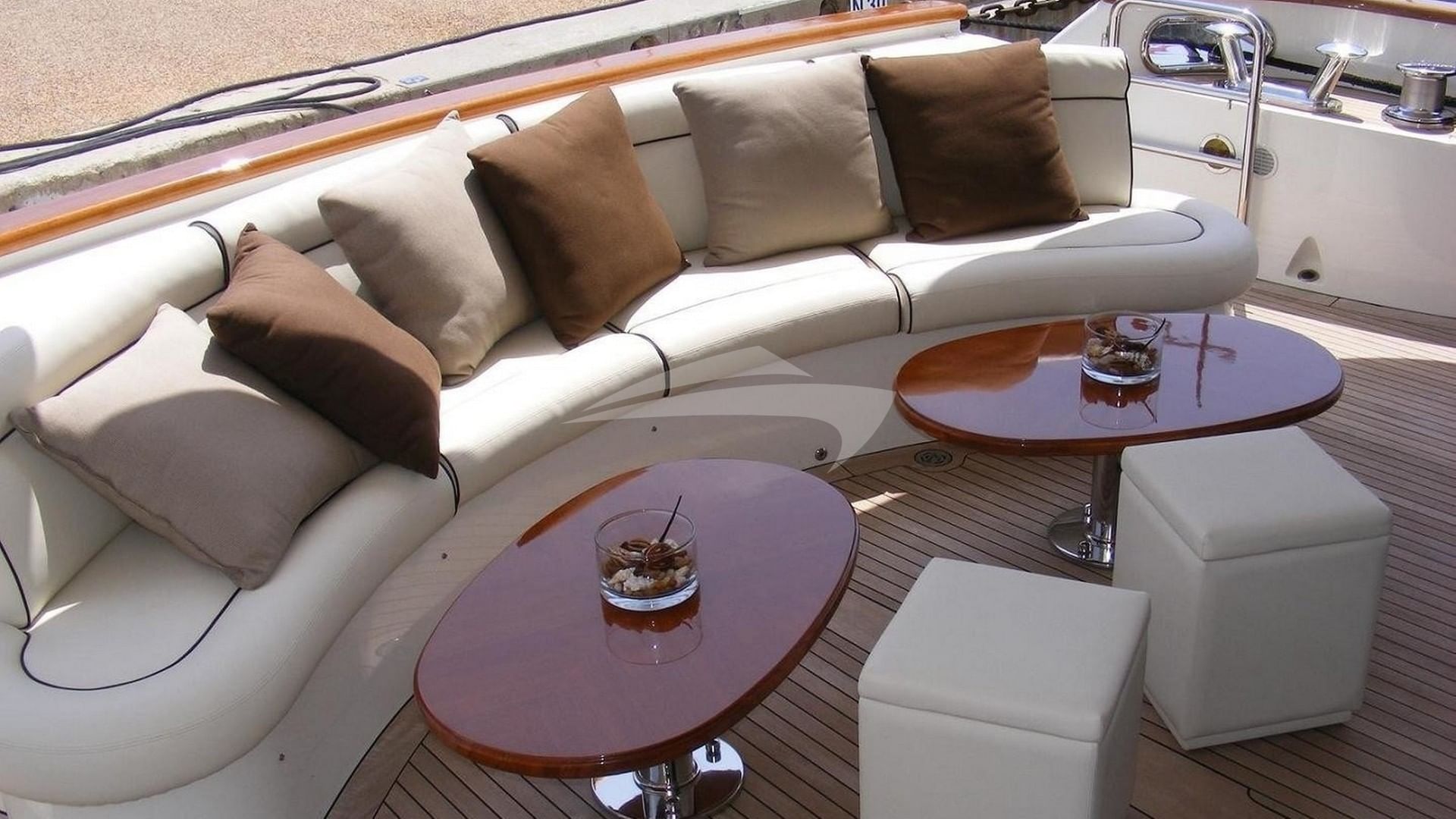 Zu den Annehmlichkeiten an Bord gehören eine Klimaanlage, eine Spielekonsole, ein Audiosystem im Innenbereich, eine iPod-Dockingstation, ein Whirlpool an Deck, Satellitenfernsehen, spezielle Ernährungsbedürfnisse, Stabilisatoren vor Anker, eine TV-Hauptkabine und ein Fernsehsalon.