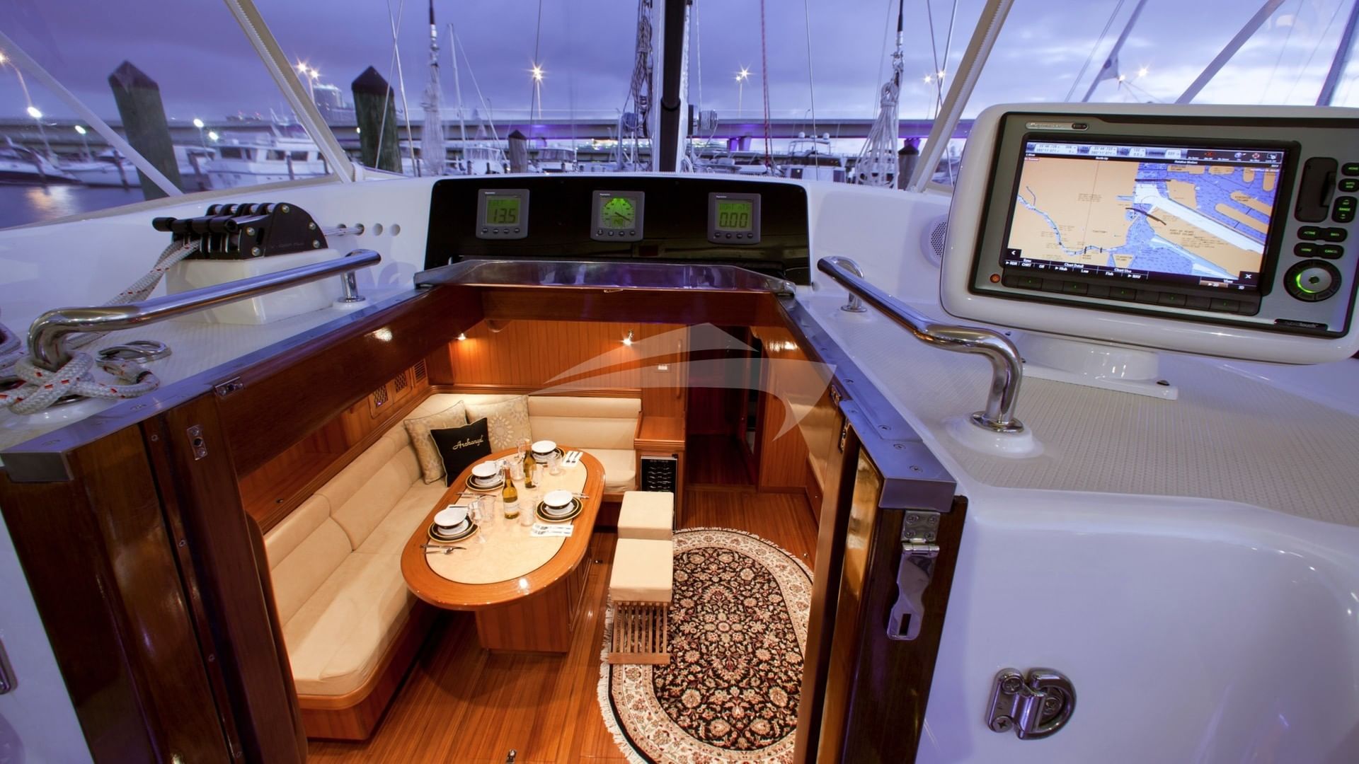 Zu den Annehmlichkeiten an Bord gehören Klimaanlage, Grill, Außendusche, Indoor-Audiosystem, iPod-Dockingstation, Satellitenkommunikation, Satellitenfernsehen, Badeplattform und WLAN.