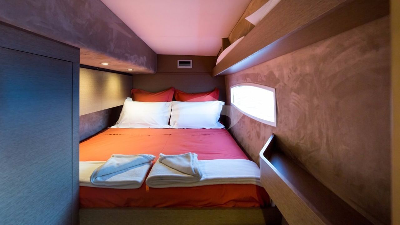 Das STERGANN II bietet Platz für 8 Gäste in 4 Kabinen, bestehend aus einer Kabine mit einem Queensize-Bett und einem eigenen Bad, einer Kabine mit einem Queensize-Bett und einem eigenen Bad, einer Primärsuite mit einem Queensize-Bett und einem eigenen Bad auf dem Hauptdeck und einer Kabine mit Queensize-Bett großes Bett und ein eigenes Bad.