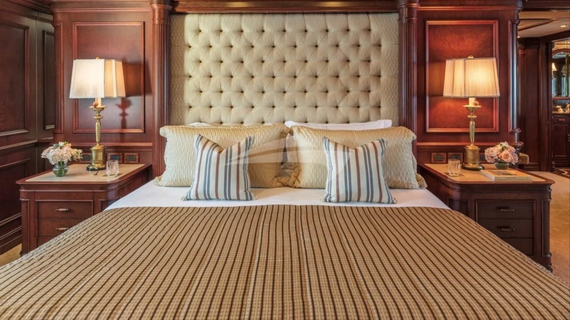 Die Gästekabinen umfassen eine primäre Suite mit einem Kingsize-Bett und einem eigenen Bad, 3 Kabinen mit einem Queensize-Bett und einem eigenen Bad sowie 2 Kabinen mit einem Einzelbett und einem eigenen Bad.