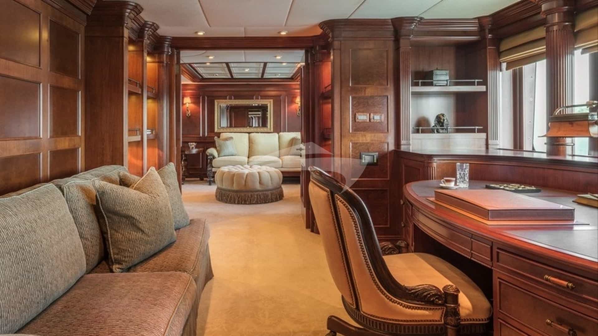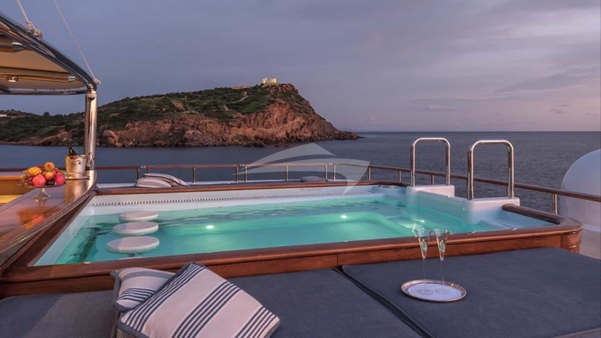 Zu den Annehmlichkeiten an Bord für die Chartergäste gehören Klimaanlage, Grill, Kino, Trainingsgeräte, leichte Angelausrüstung, Fitnessraum, Hubschrauberlandeplatz, Whirlpool an Deck, Satellitenfernsehen, Spa, Stabilisatoren vor Anker, Swimmingpool und WLAN.