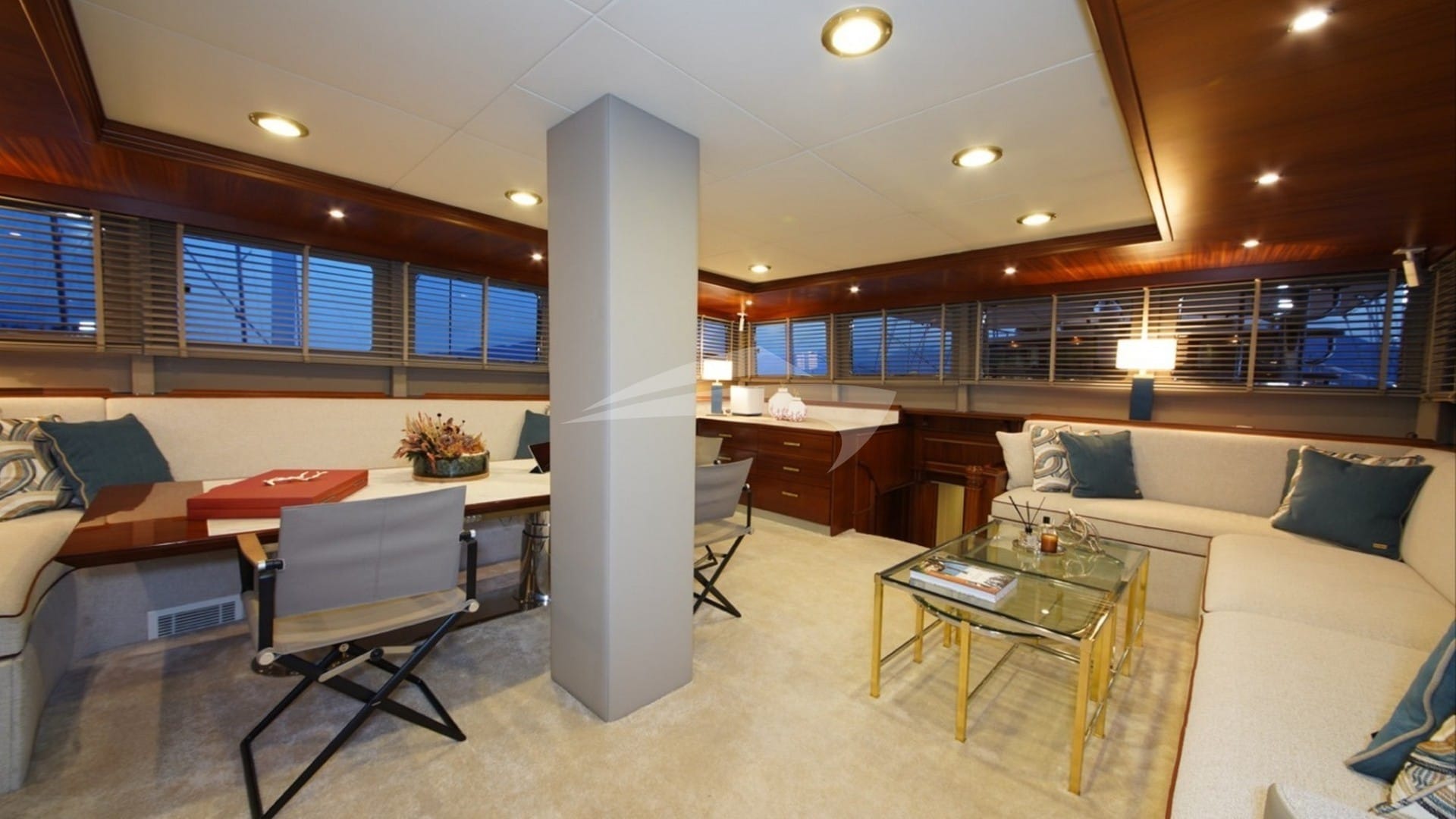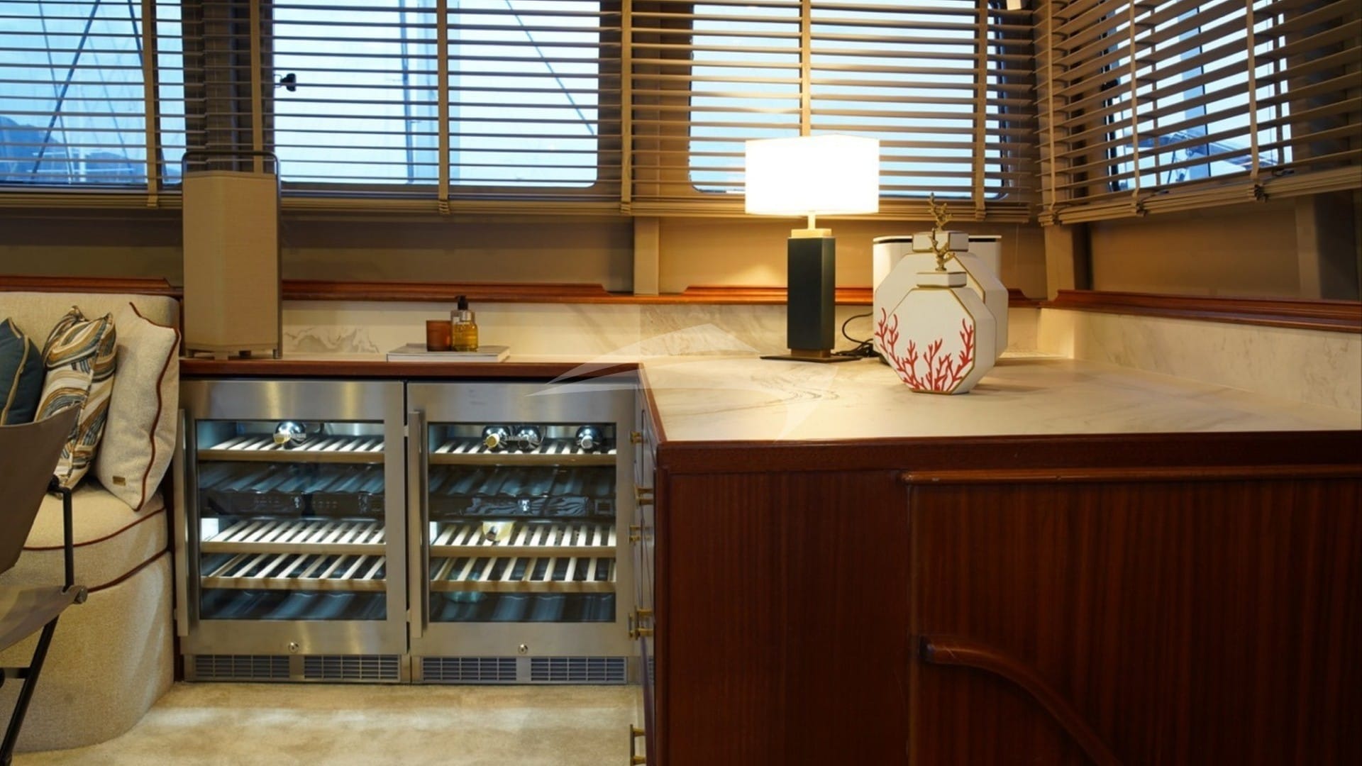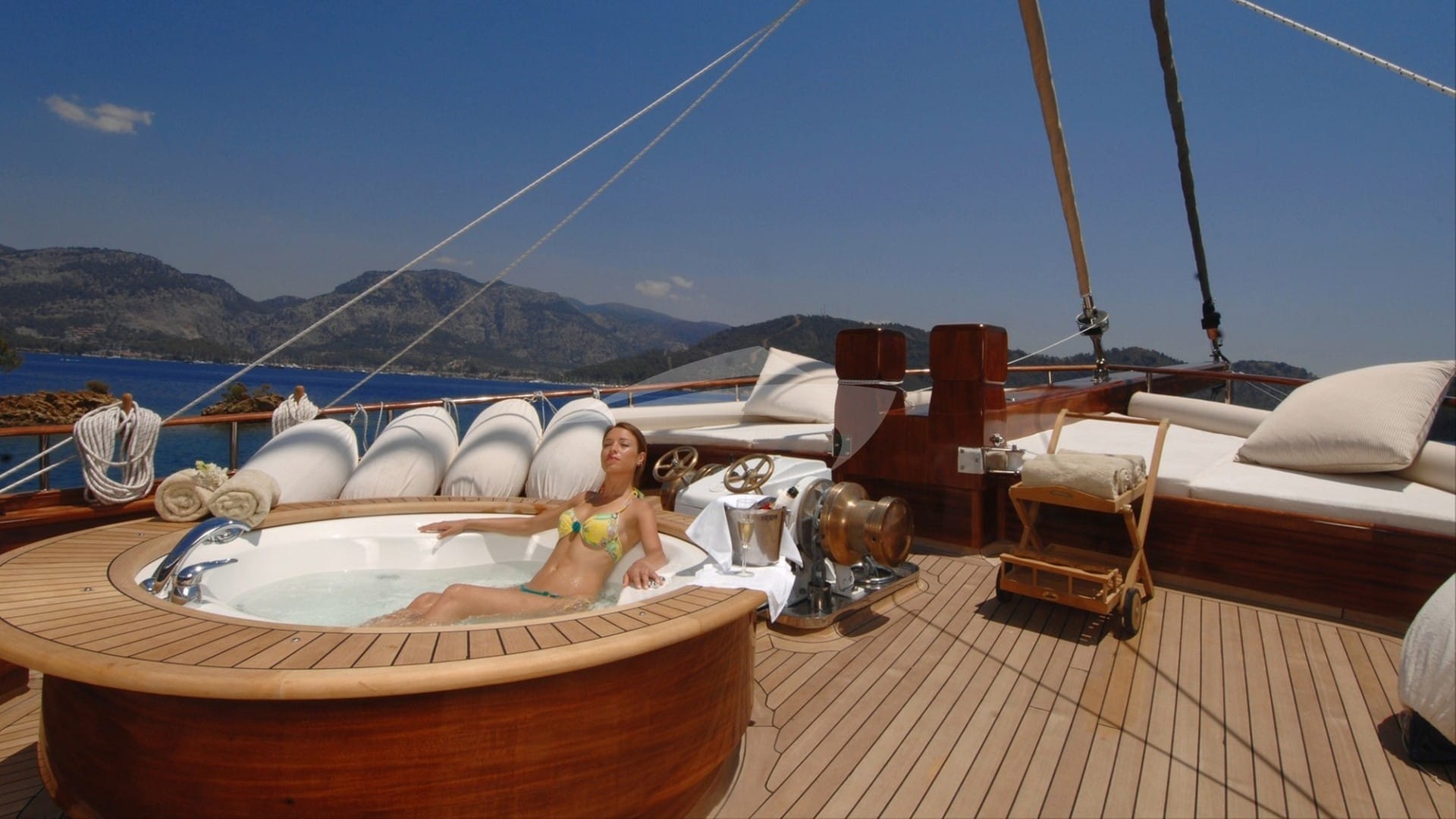 Zu den Annehmlichkeiten an Bord gehören eine Klimaanlage, Trainingsgeräte, leichte Angelausrüstung, ein Fitnessstudio, ein Whirlpool an Deck und WLAN.