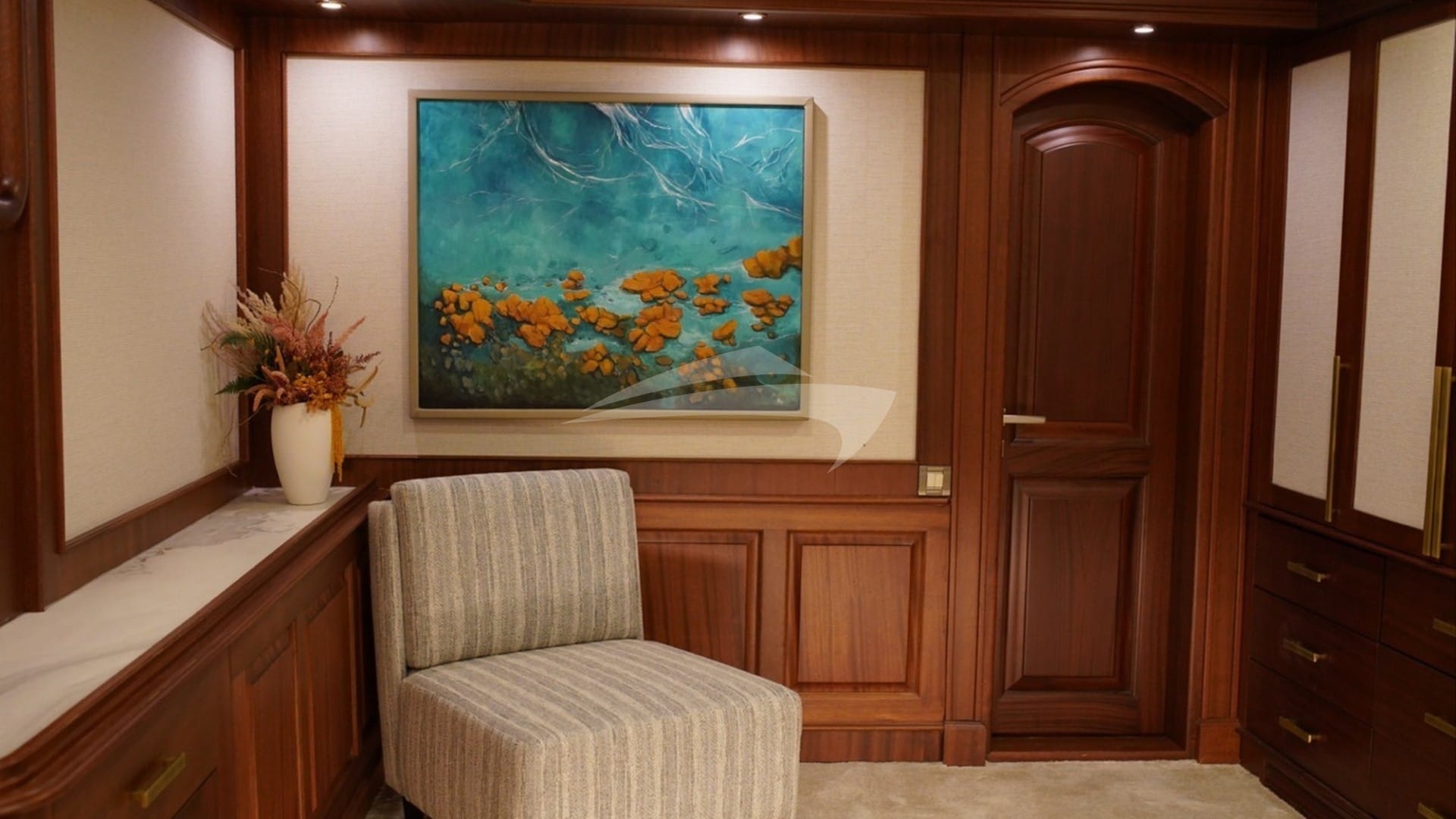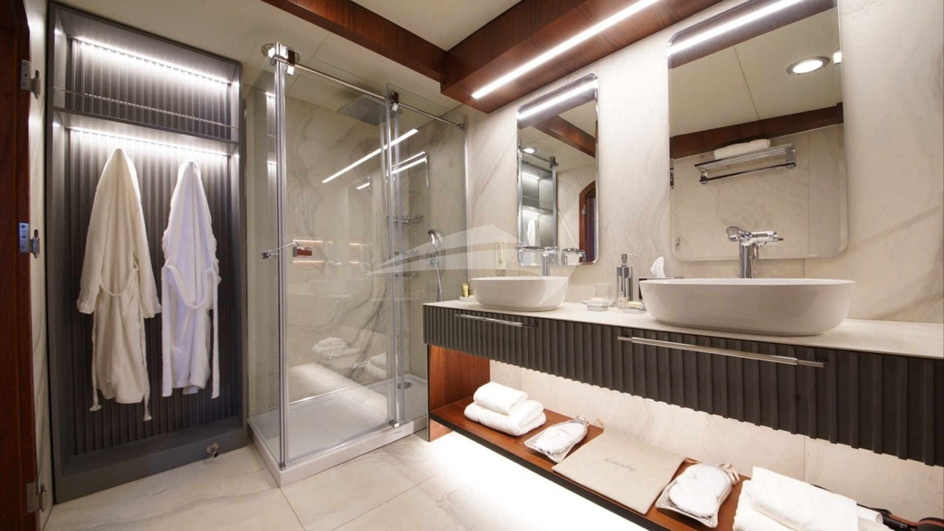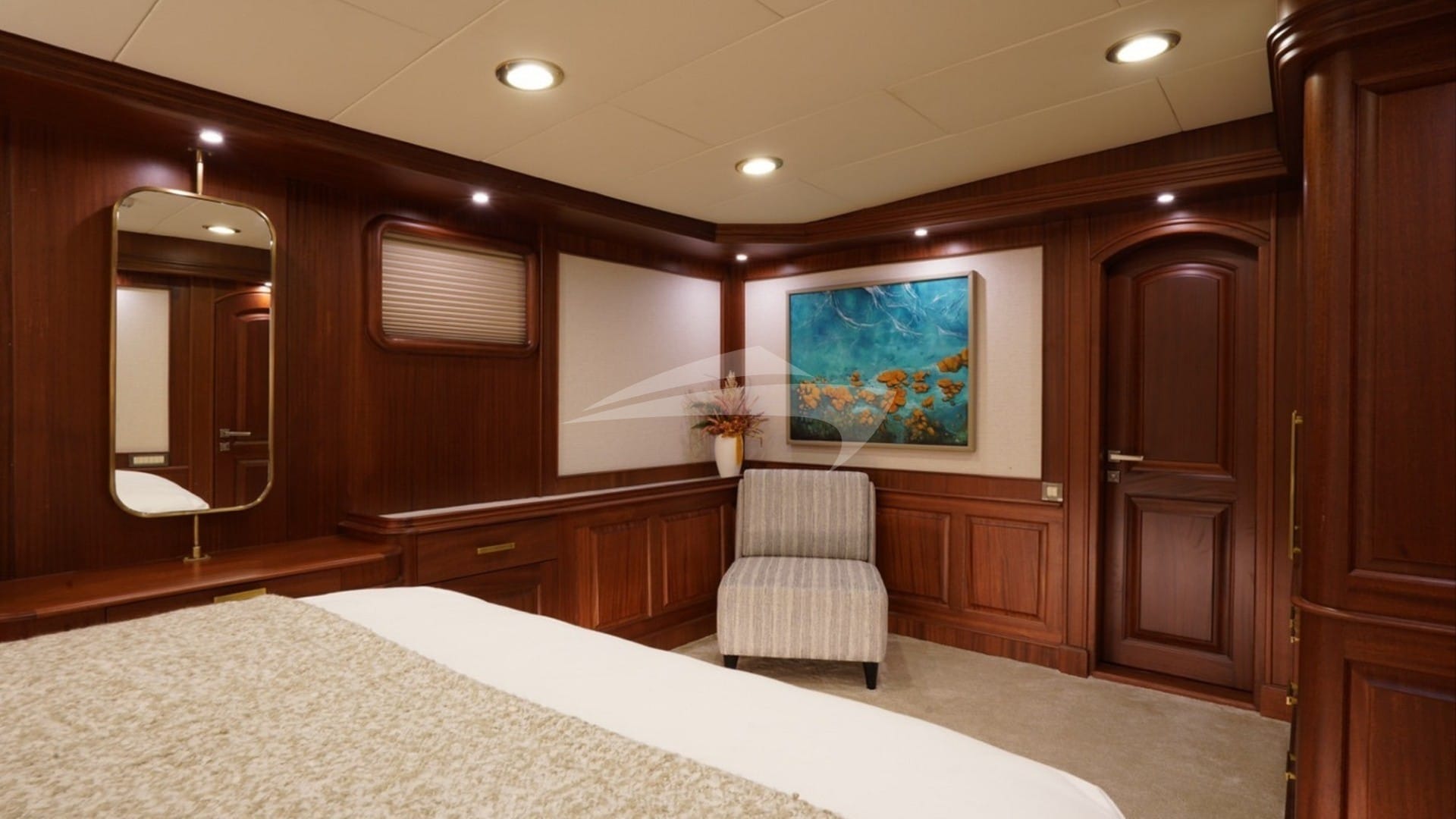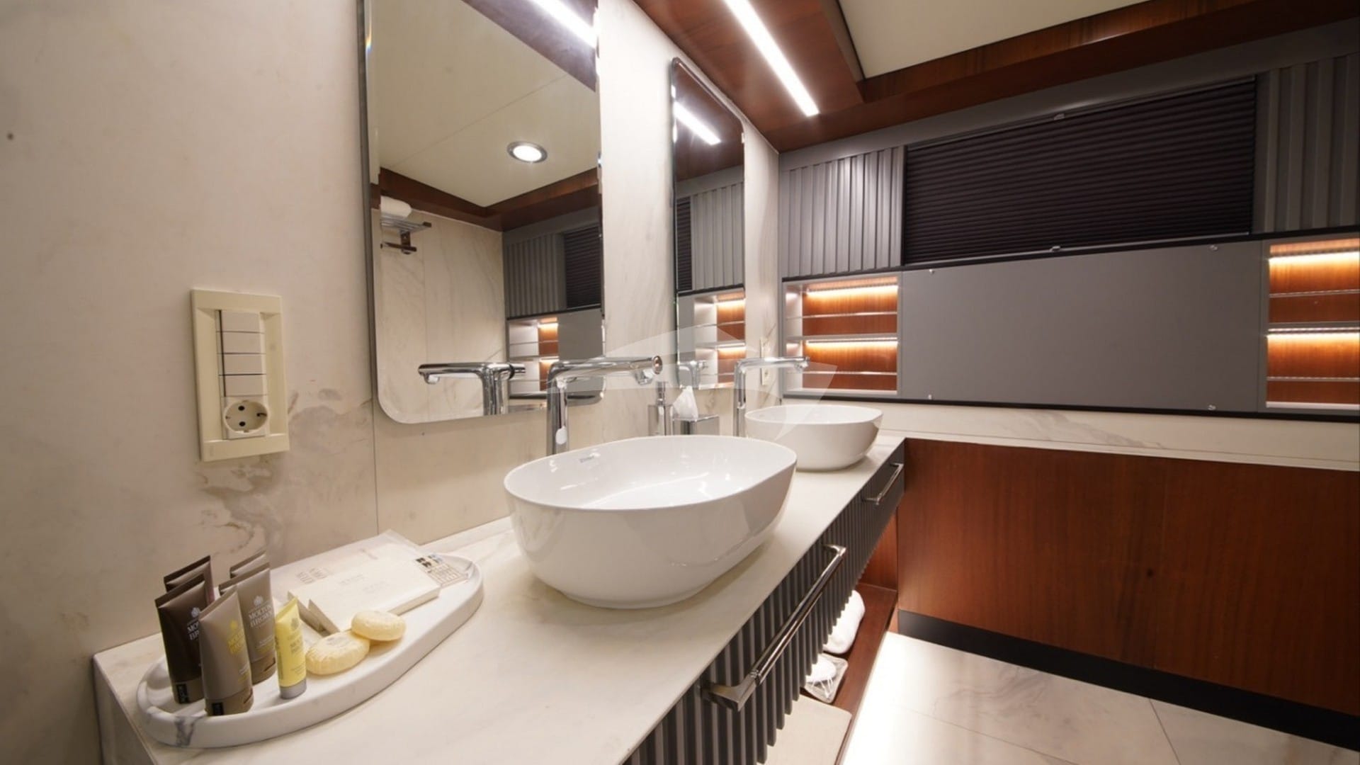 MARE NOSTRUM bietet Platz für 12 Gäste in 6 Kabinen, bestehend aus einer Primärsuite mit einem Kingsize-Bett und eigenem Bad, einer Kabine mit einem Doppelbett und eigenem Bad sowie 4 Kabinen mit einem Kingsize-Bett und eigenem Bad.