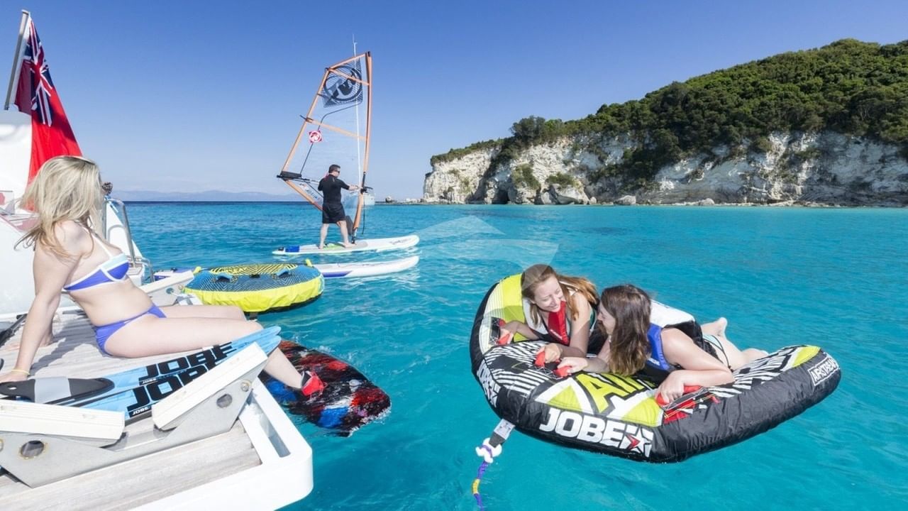 Zu den Annehmlichkeiten an Bord gehören Klimaanlage, Grill, Kaffeemaschine, Außendusche, leichte Angelausrüstung, Indoor-Audiosystem, Outdoor-Audiosystem, Sonnenpolster, Badeplattform, TV-Salon, Wasserkocher und WLAN.