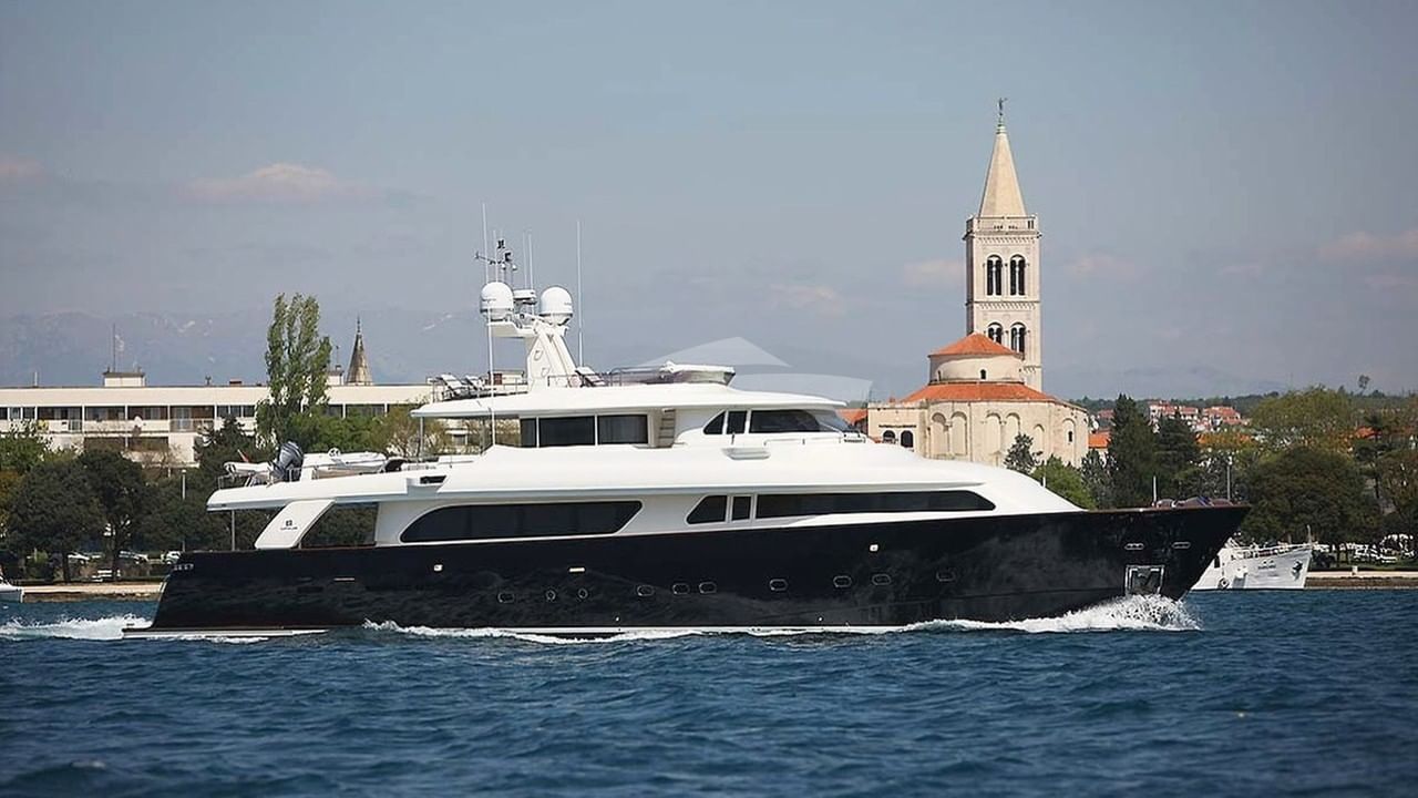 Der 102 Fuß/31 m lange KLOBUK wurde mit einem GFK-Rumpf gebaut und wird von 2x 1360 PS starken MAN V12 mit einer Reisegeschwindigkeit von 13 Knoten angetrieben.