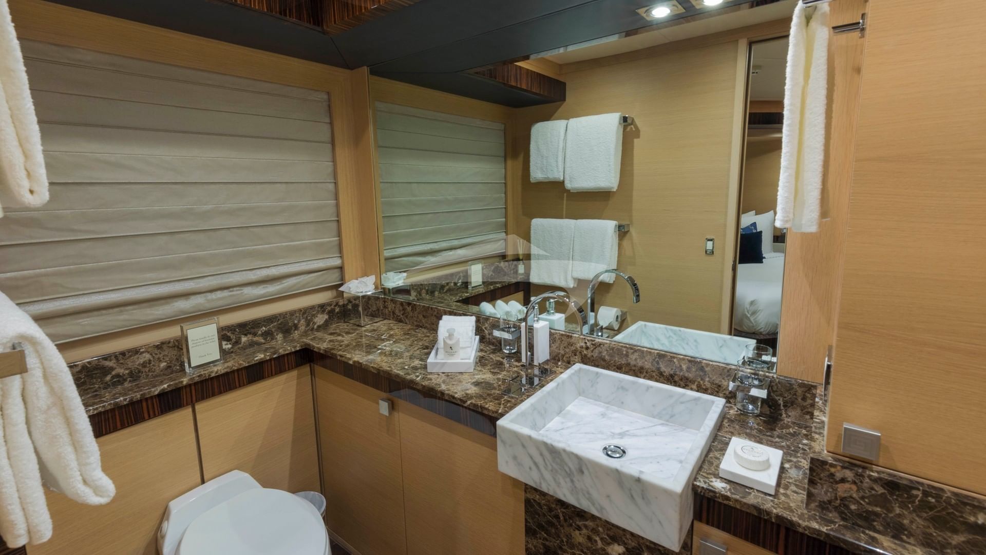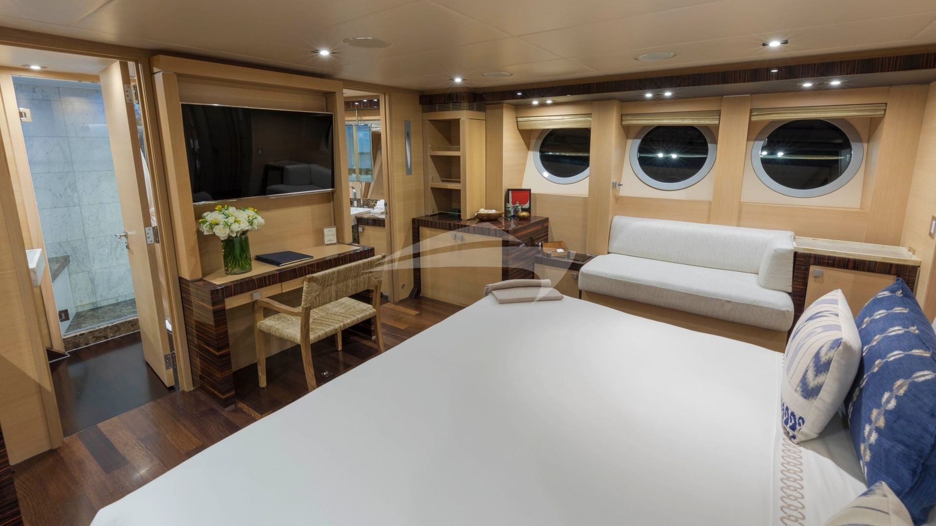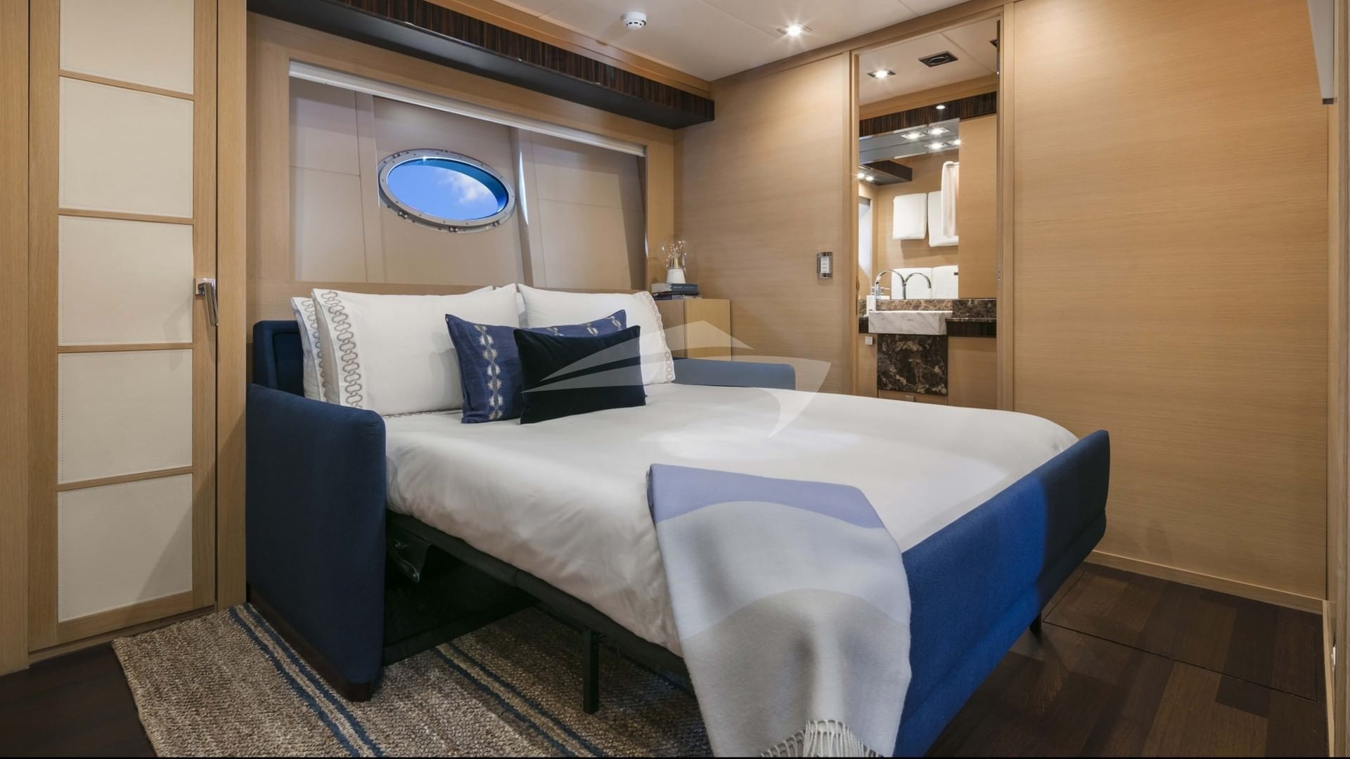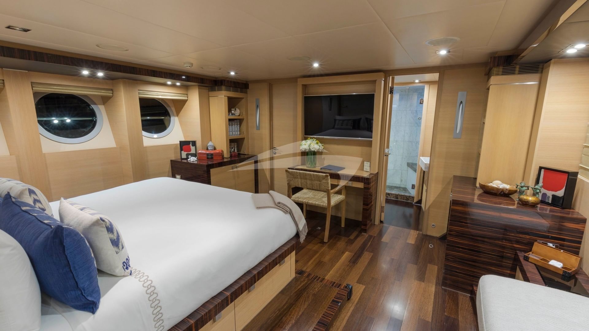 Das BW bietet Platz für 8 Personen in 4 Kabinen, bestehend aus einer primären Suite mit einem Kingsize-Bett und einem eigenen Bad unten, einer VIP-Suite mit einem Queensize-Bett und einem eigenen Bad sowie 2 Kabinen mit einem Queensize-Bett und einem eigenen Bad.