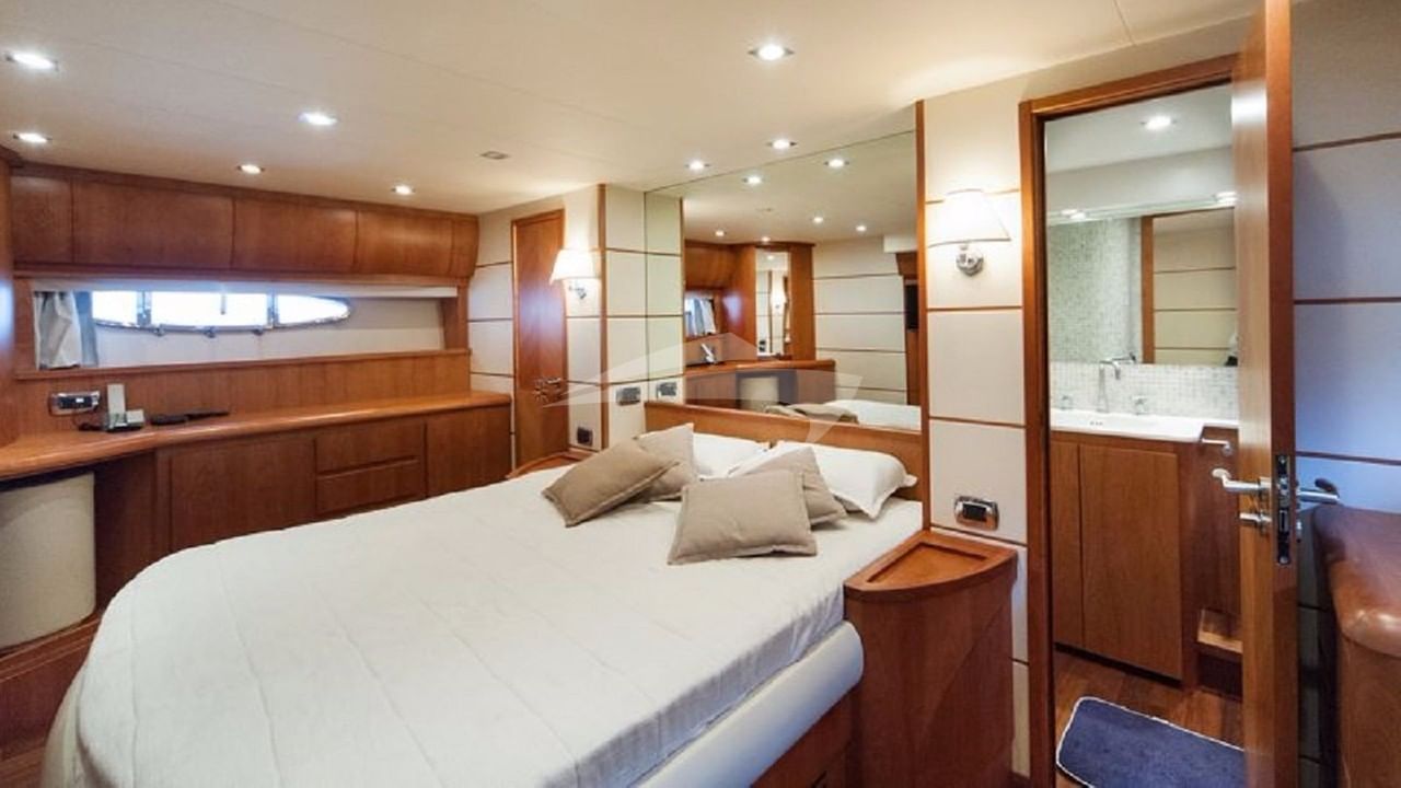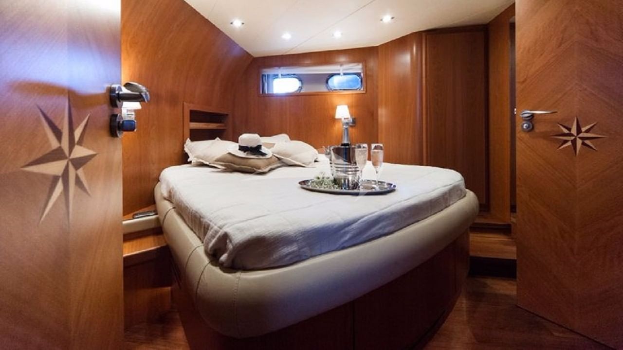 NADAZERO bietet Platz für 8 Personen in 4 Kabinen, bestehend aus einer primären Suite mit einem Queensize-Bett und einem Doppelbett und einem eigenen Bad, einer Kabine mit einem Queensize-Bett und einem eigenen Bad sowie 2 Kabinen mit einem Doppelbett und einem eigenen Bad.