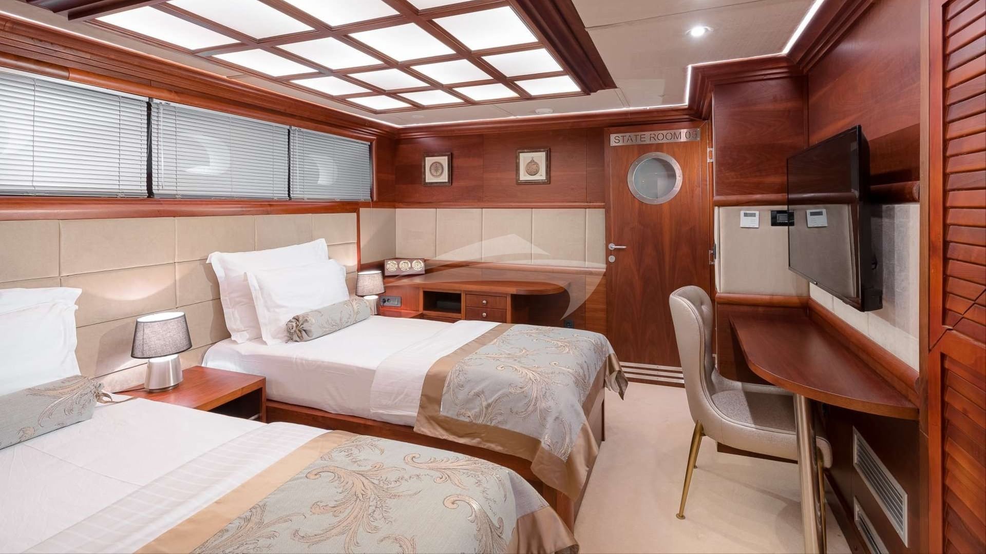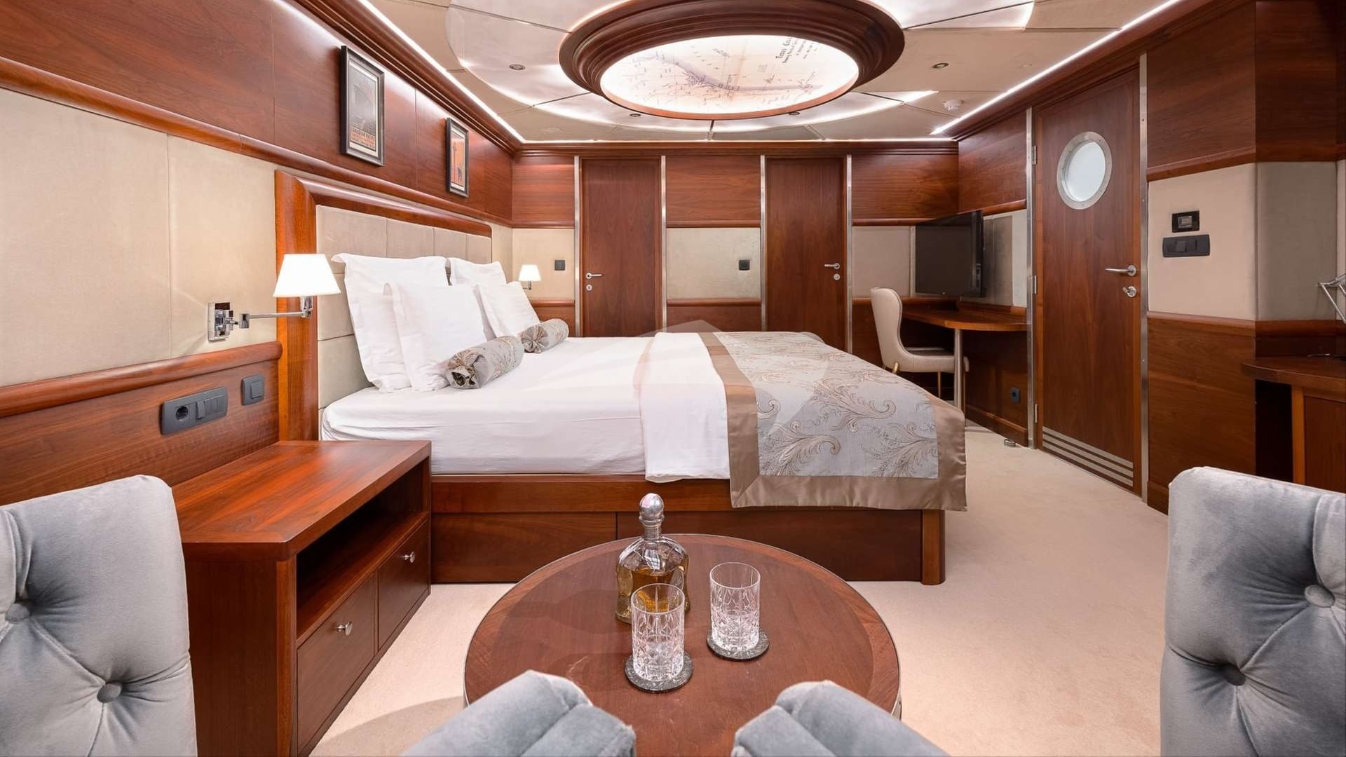 Die Gästekabinen umfassen eine primäre Suite mit einem Kingsize-Bett und einem eigenen Bad, eine Kabine mit einem Kingsize-Bett und einem eigenen Bad sowie 4 Kabinen mit einem Queensize-Bett und einem eigenen Bad.