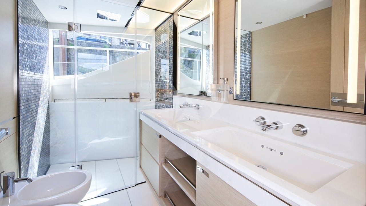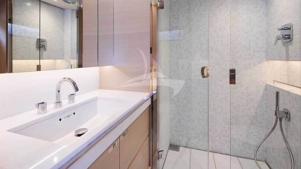HALLELUJAH bietet Platz für 10 Gäste in 5 Kabinen, bestehend aus einer primären Suite mit einem Kingsize-Bett und eigenem Bad, einer Kabine mit einem Queensize-Bett und einem eigenen Bad, 2 Kabinen mit einem Doppelbett und eigenem Bad sowie einer Kabine mit einem Doppelbett und einem eigenen Bad sowie einer Kabine mit einem Doppelbett und einem eigenen Bad Einrichtungen.