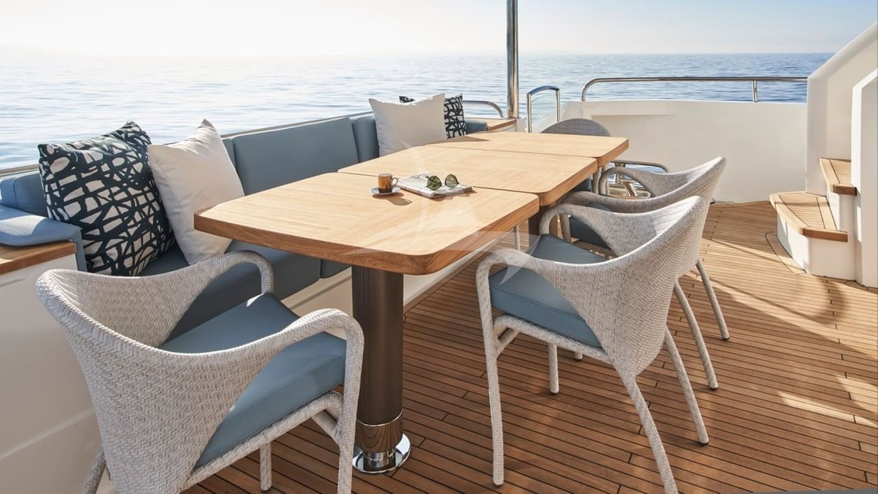 Zu den Annehmlichkeiten an Bord gehören eine Klimaanlage, Stabilisatoren am Anker und eine Badeplattform.