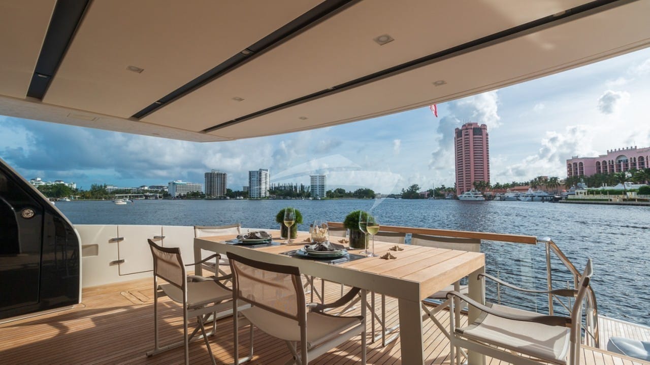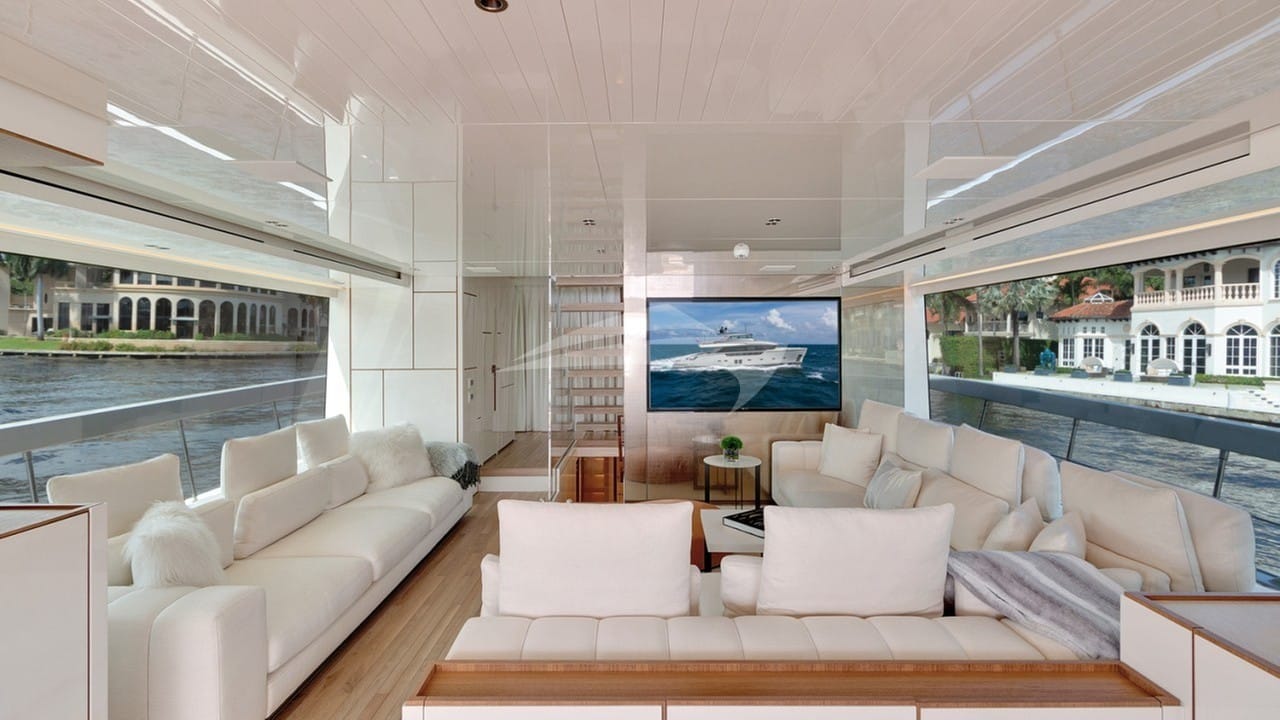 Zu den Annehmlichkeiten an Bord gehören Klimaanlage, Strandclub, Trainingsgeräte, Fitnessraum, Indoor-Audiosystem, Outdoor-Audiosystem, Satellitenfernsehen, Stabilisatoren vor Anker, Sonnenliegen, Badeplattform, TV im Freien, TV-Salon und WLAN.