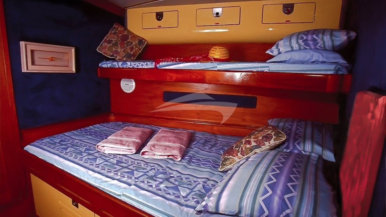 TABOO can accommodate 10 guests in 5 cabins consisting of a primary suite with a queen size bed and en-suite bathroom facilities, 2 cabins with a queen size bed and a single bed and en-suite bathroom facilities and 2 cabins with a queen size bed and en-suite bathroom facilities.