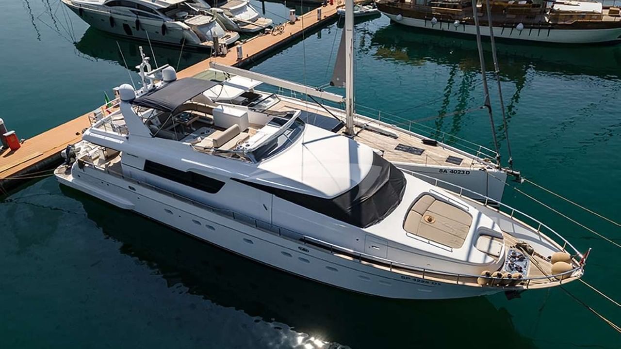 Amenities on board for the charter guests include Air Conditioning, Indoor audio system, Satellite TV, Stabilisers, Stabilisers At Anchor, TV all cabins and TV saloon.